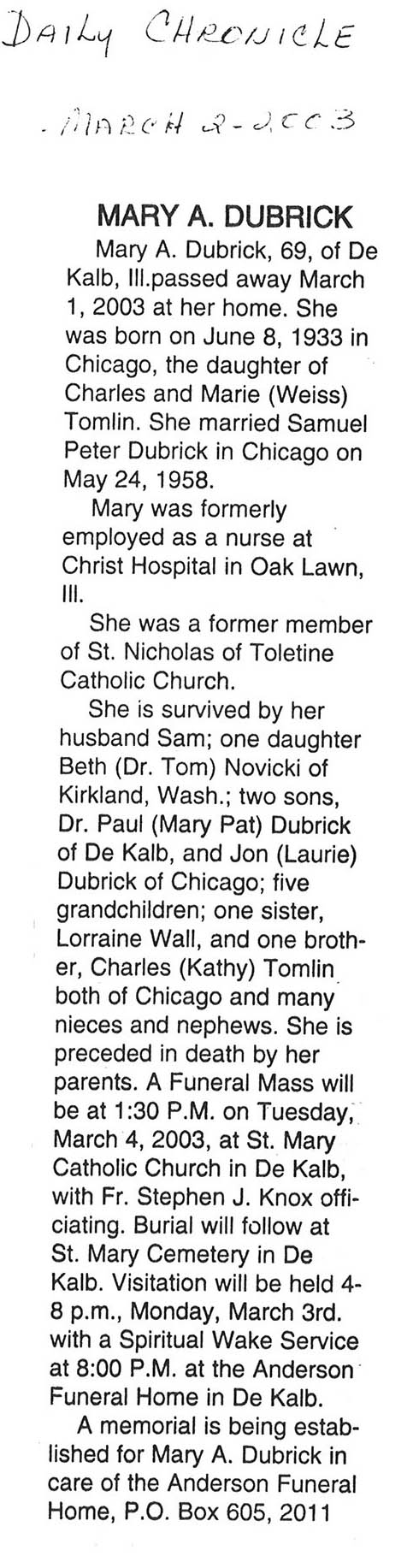 DOB 5 December 1910