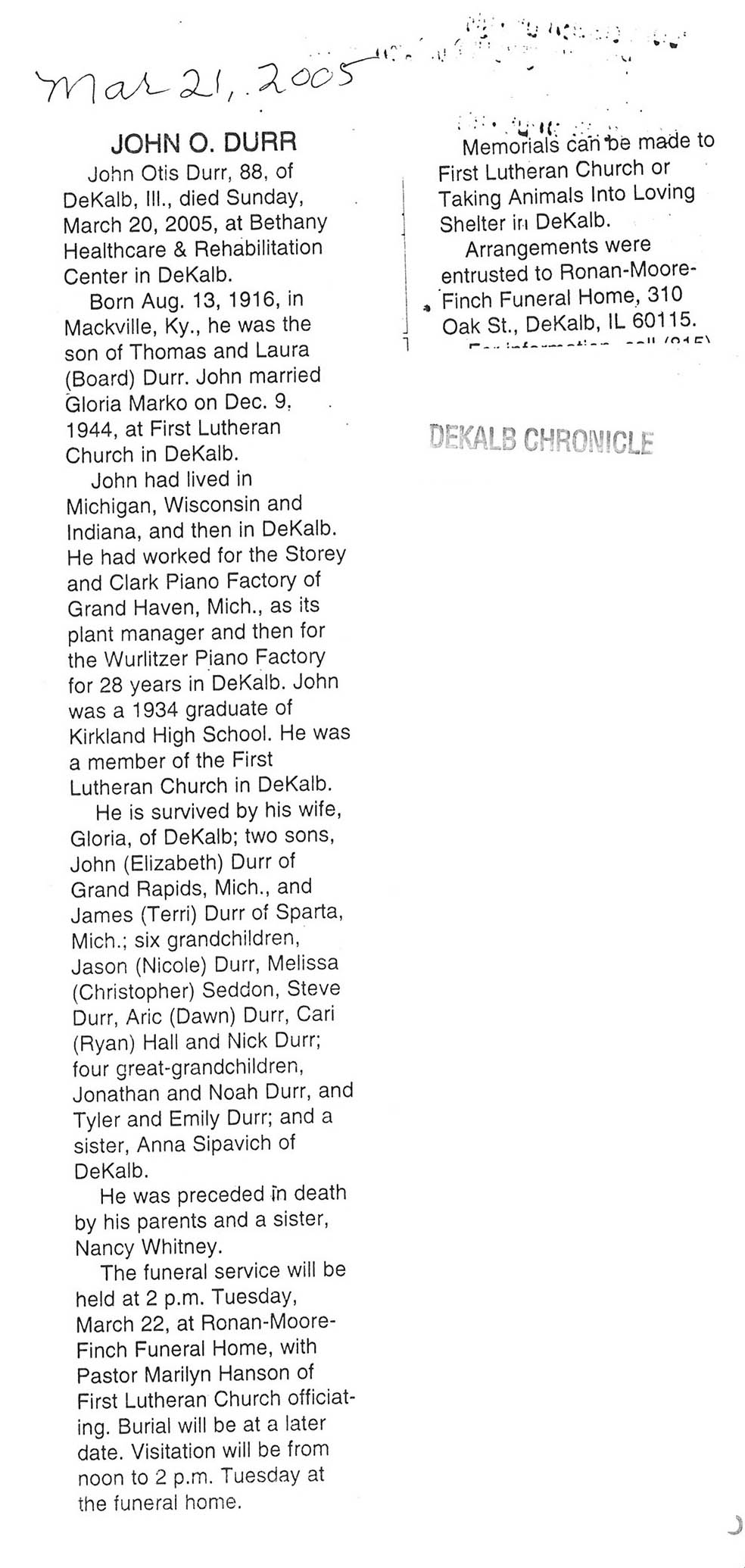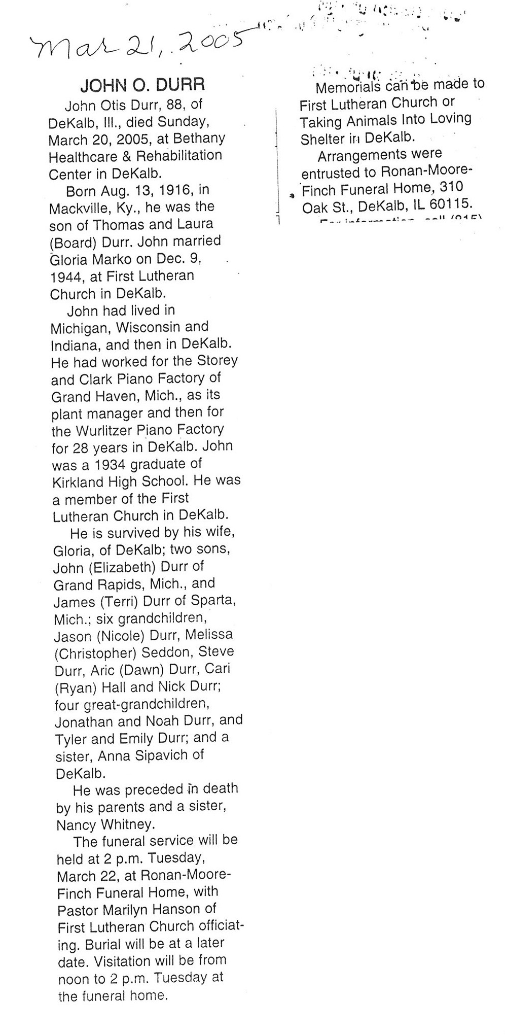 See obit of Rusell Durning for more information