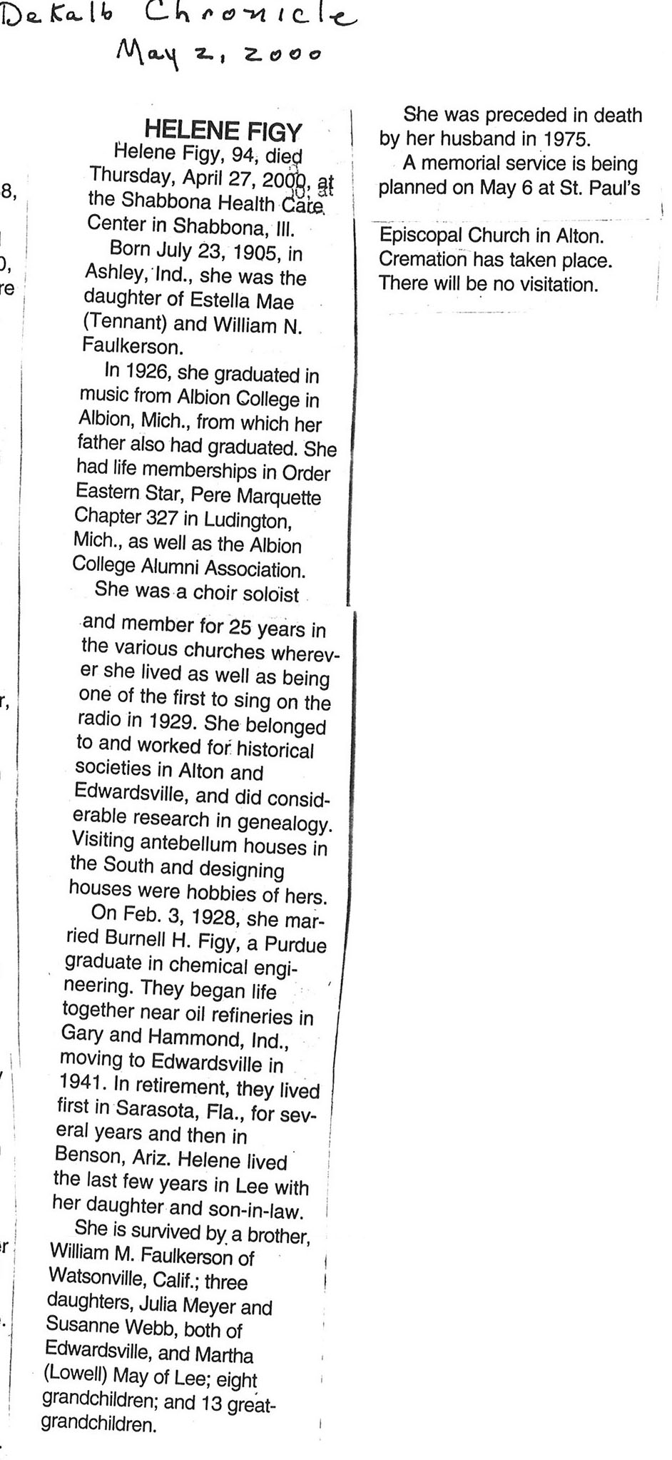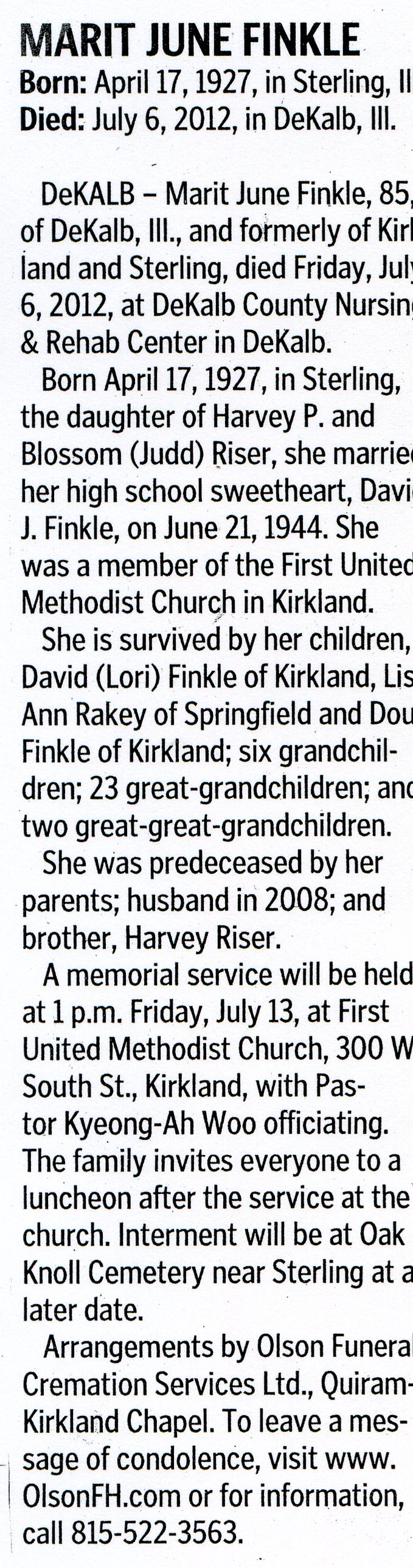Buried in Riverside Cemetery - Montgomery, IL
