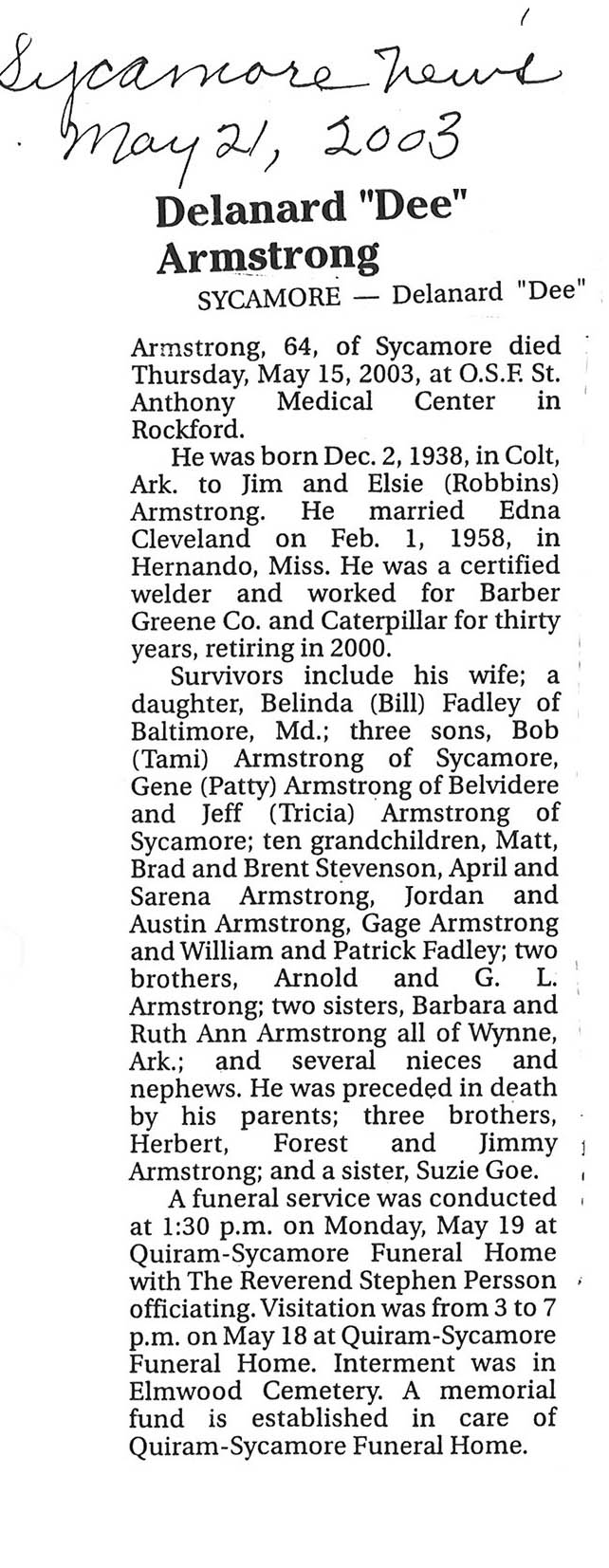Buried in Belvidere, IL