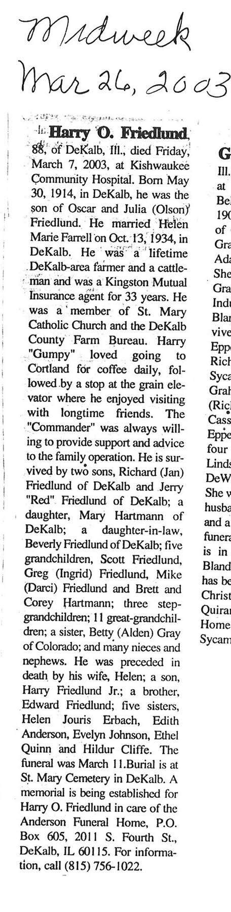 Buried in Creston, IL