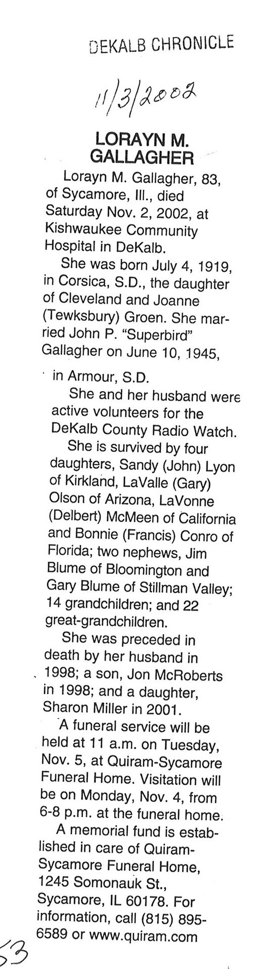 Home » Displaying all obituaries by name of the decesased (43411 matches)