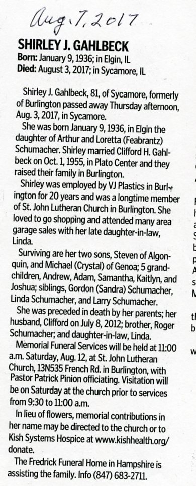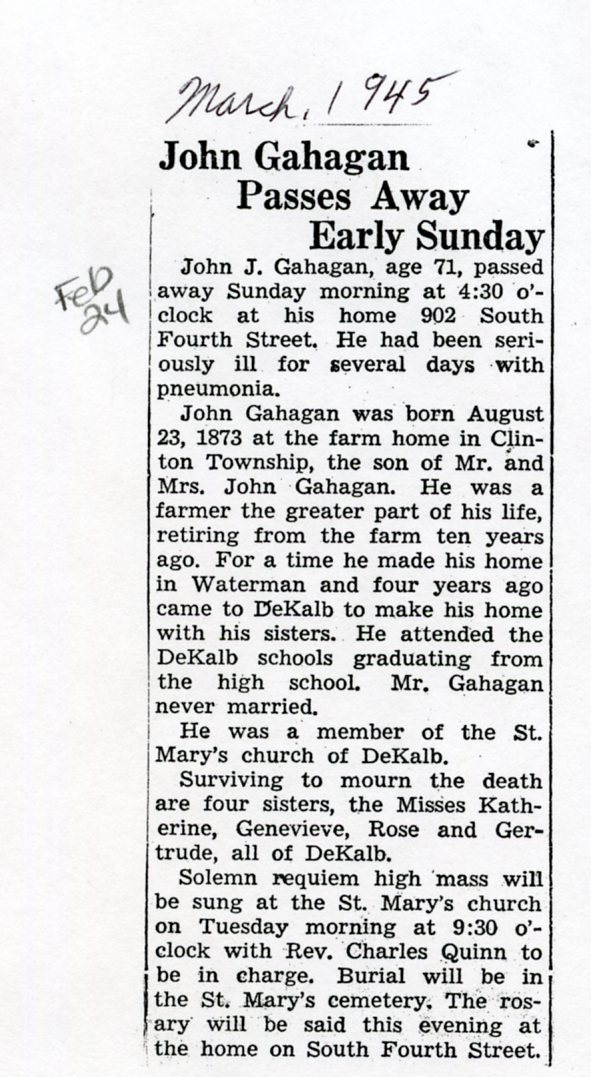 Buried in St. James Cemetery - Lee, IL