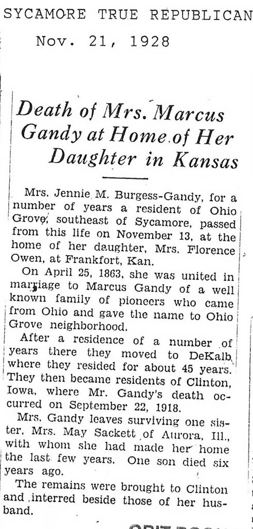 Buried in Flora Cemetery - Flora Twp, Boone County, IL