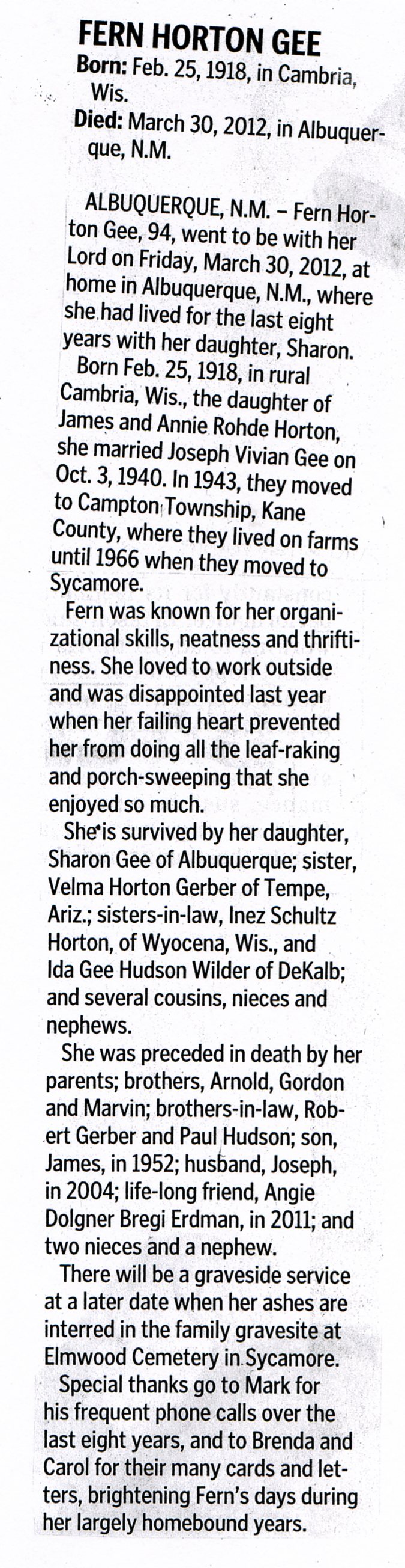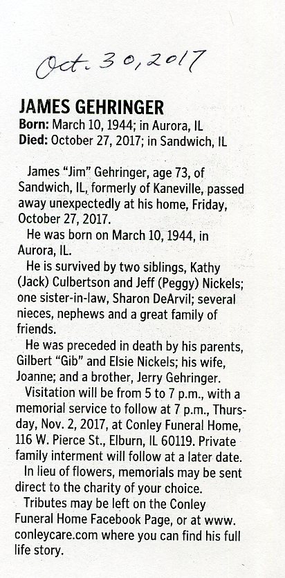 He passed away on March 29 but no year is given and no age is given in the obit