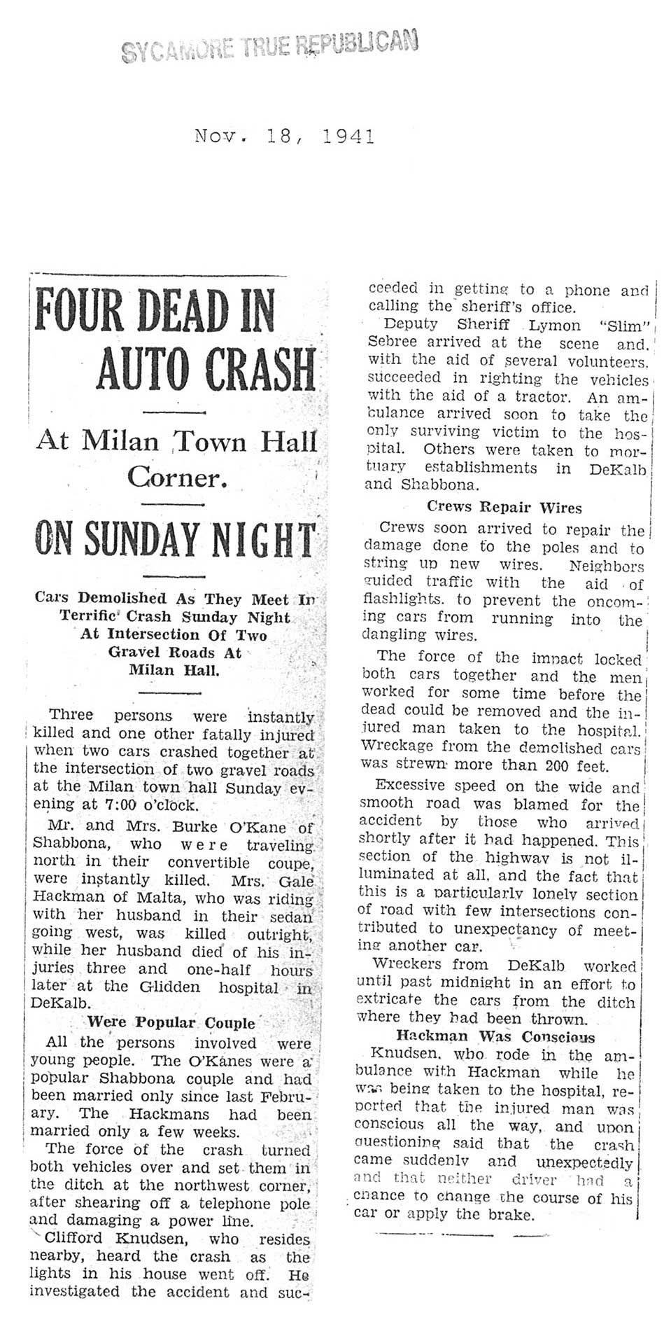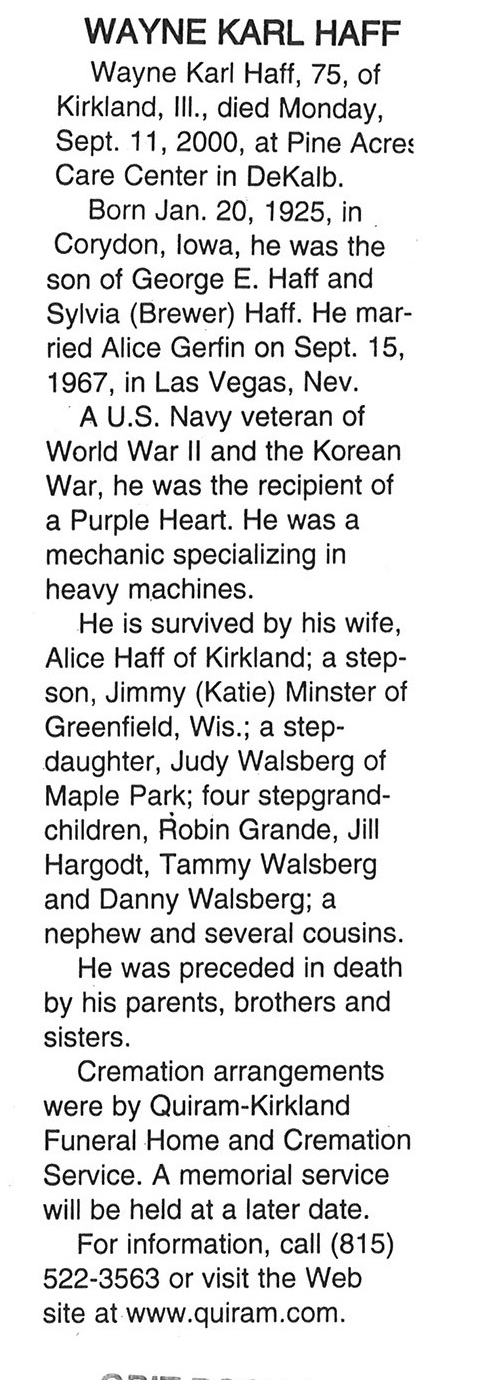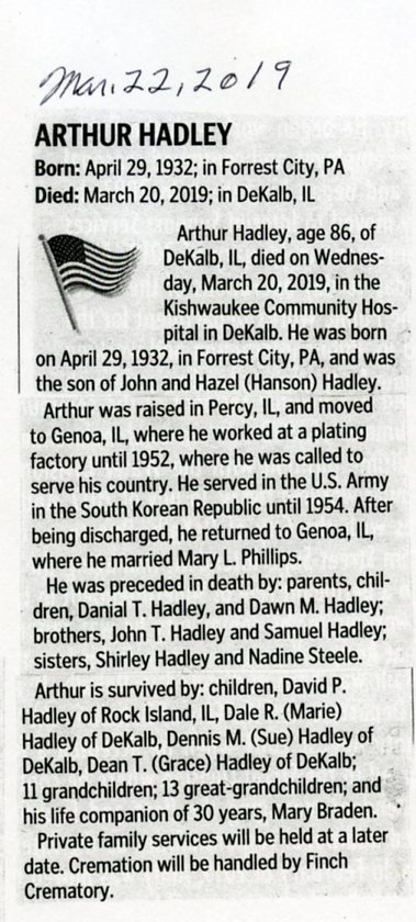 Buried in Cortland Cemetery - Illinois