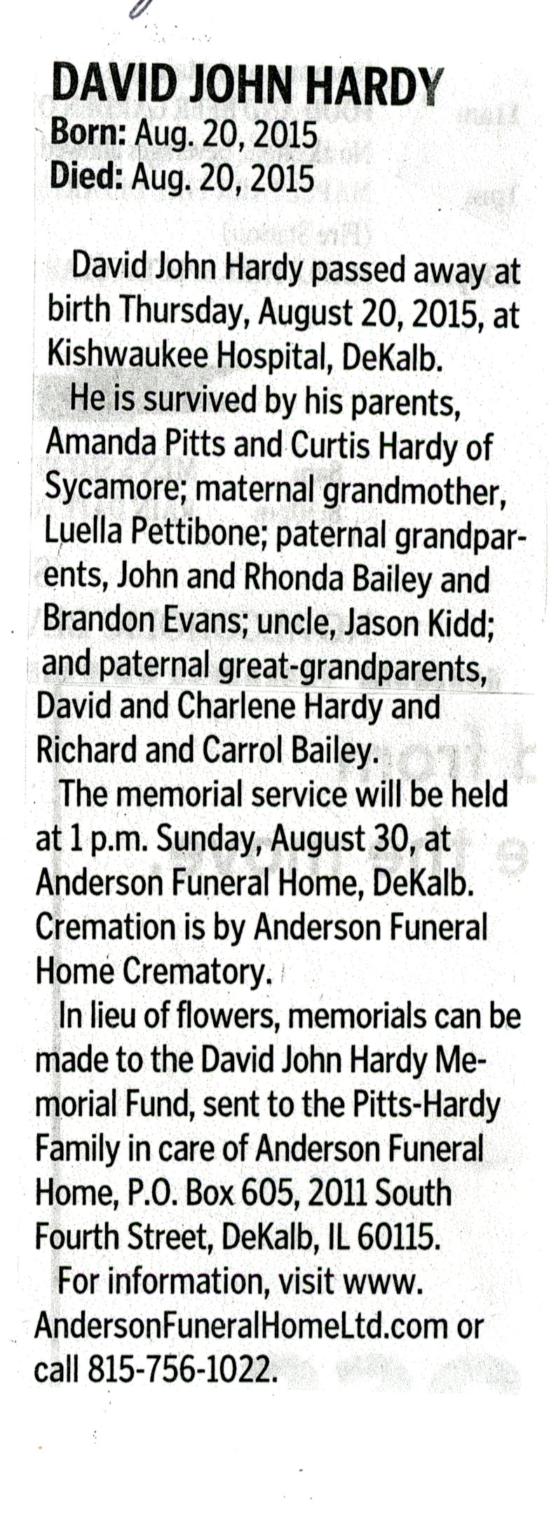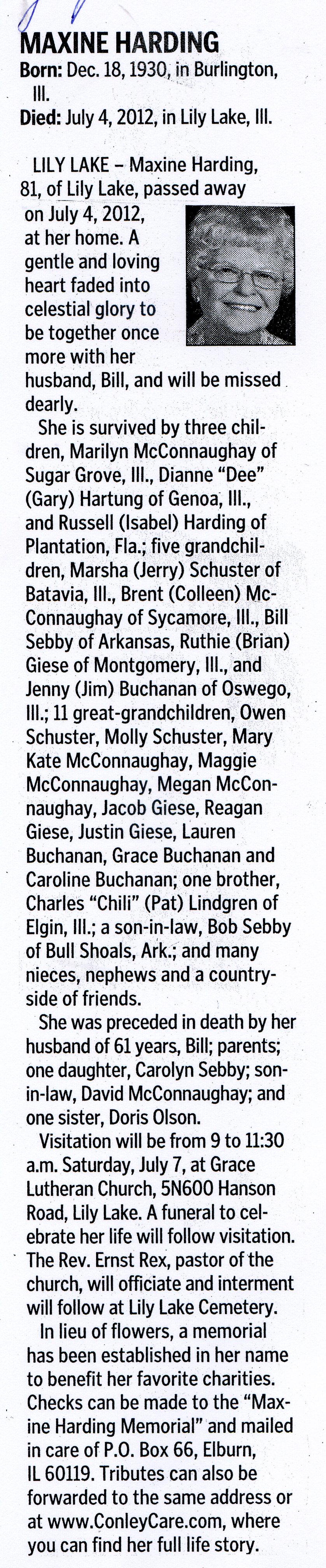 Second obit from DeKalb Daily Chronicle 8/17/2000
