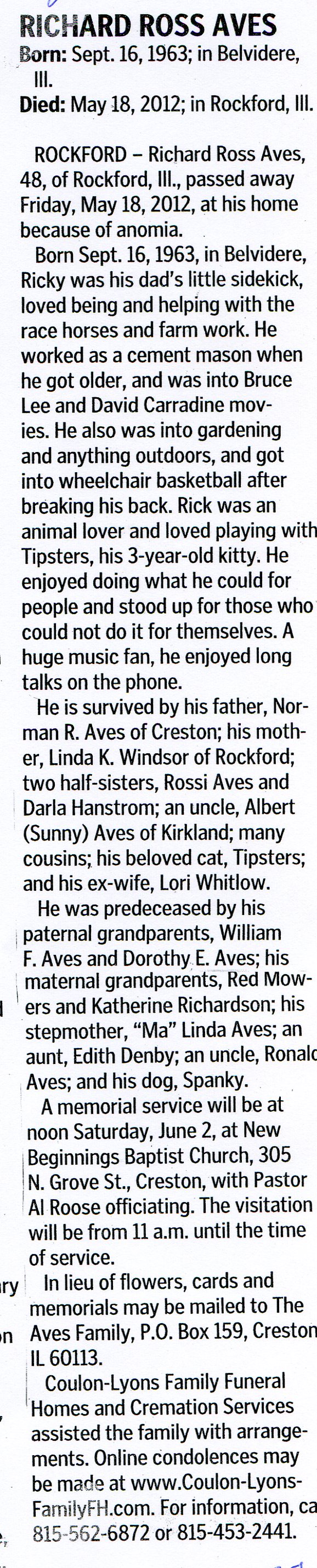 Buried in Riversde Cemetery - Sterling, IL