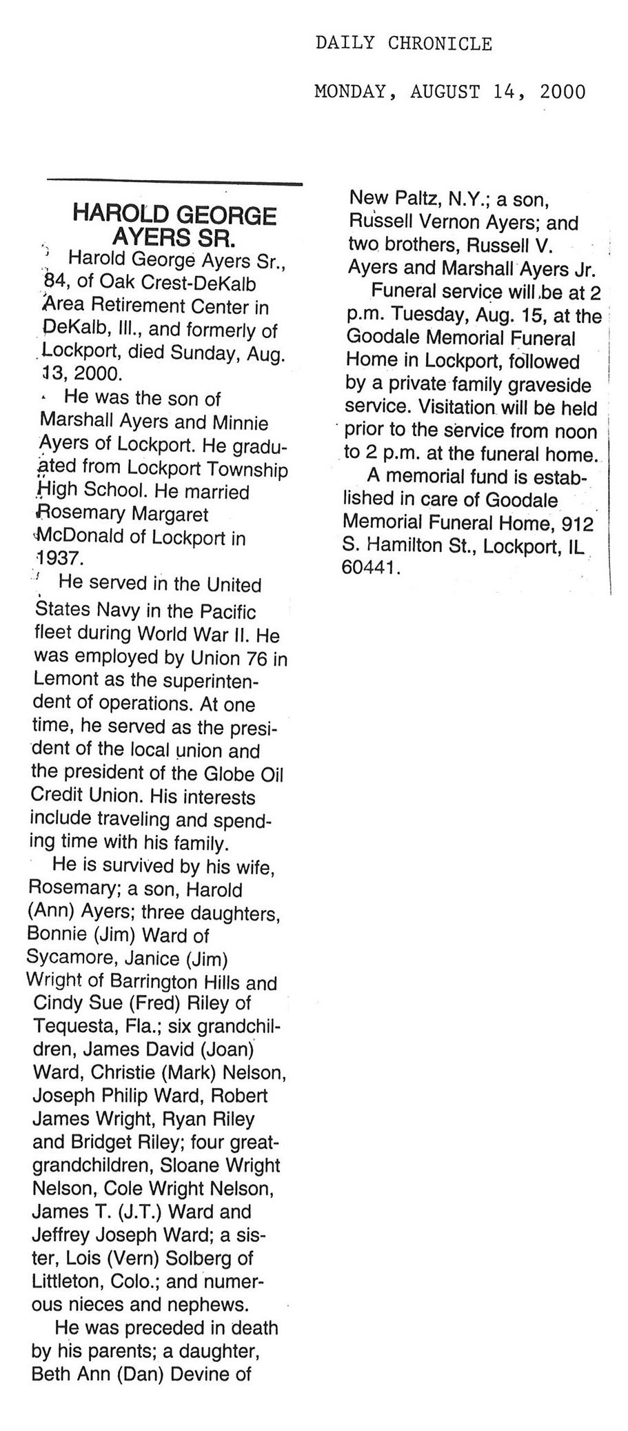 DOB August 20, 1920