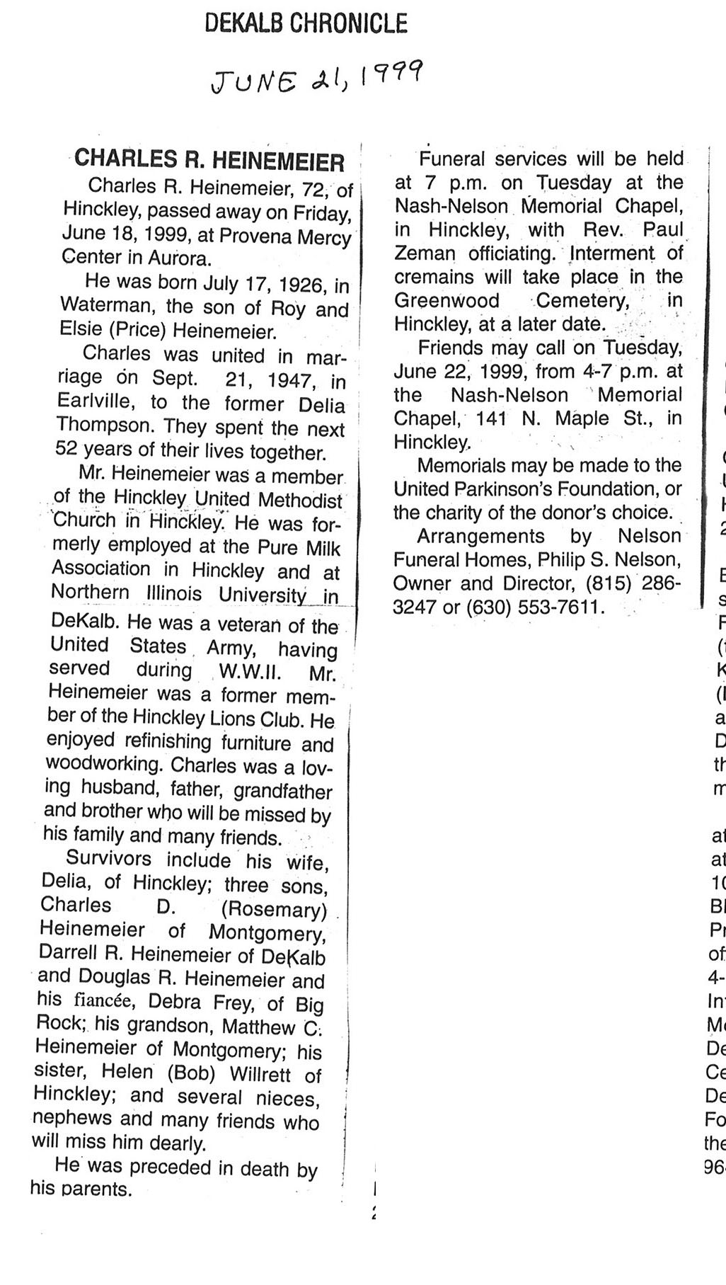 one obit indicates Herman as name