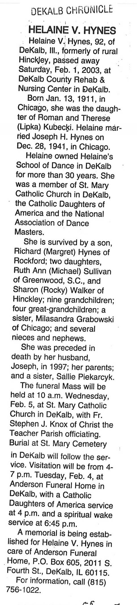 DOB Janaury 13, 1911