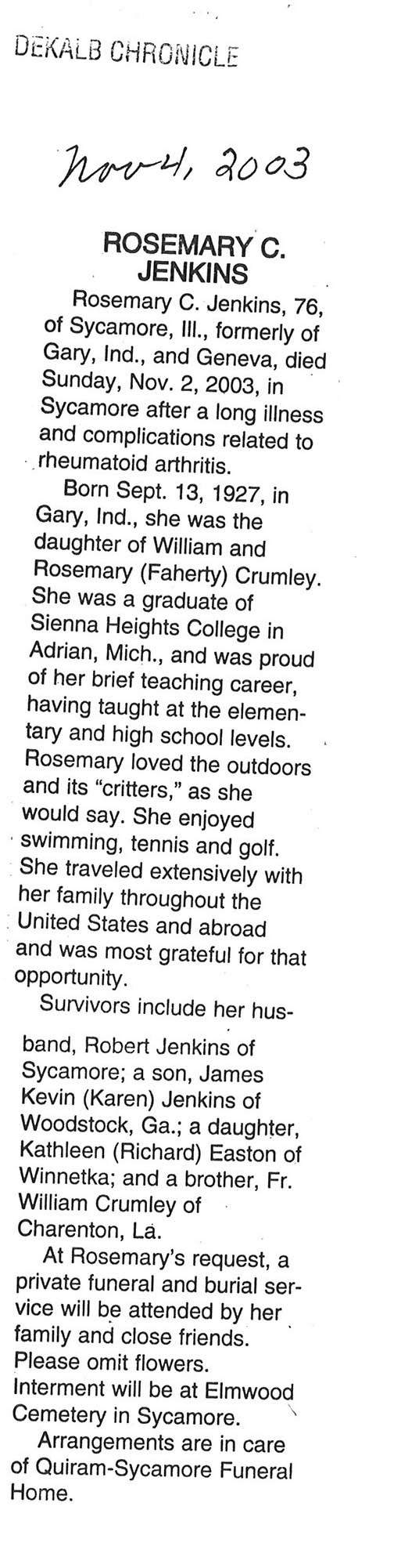 Buried in Columbus, KS