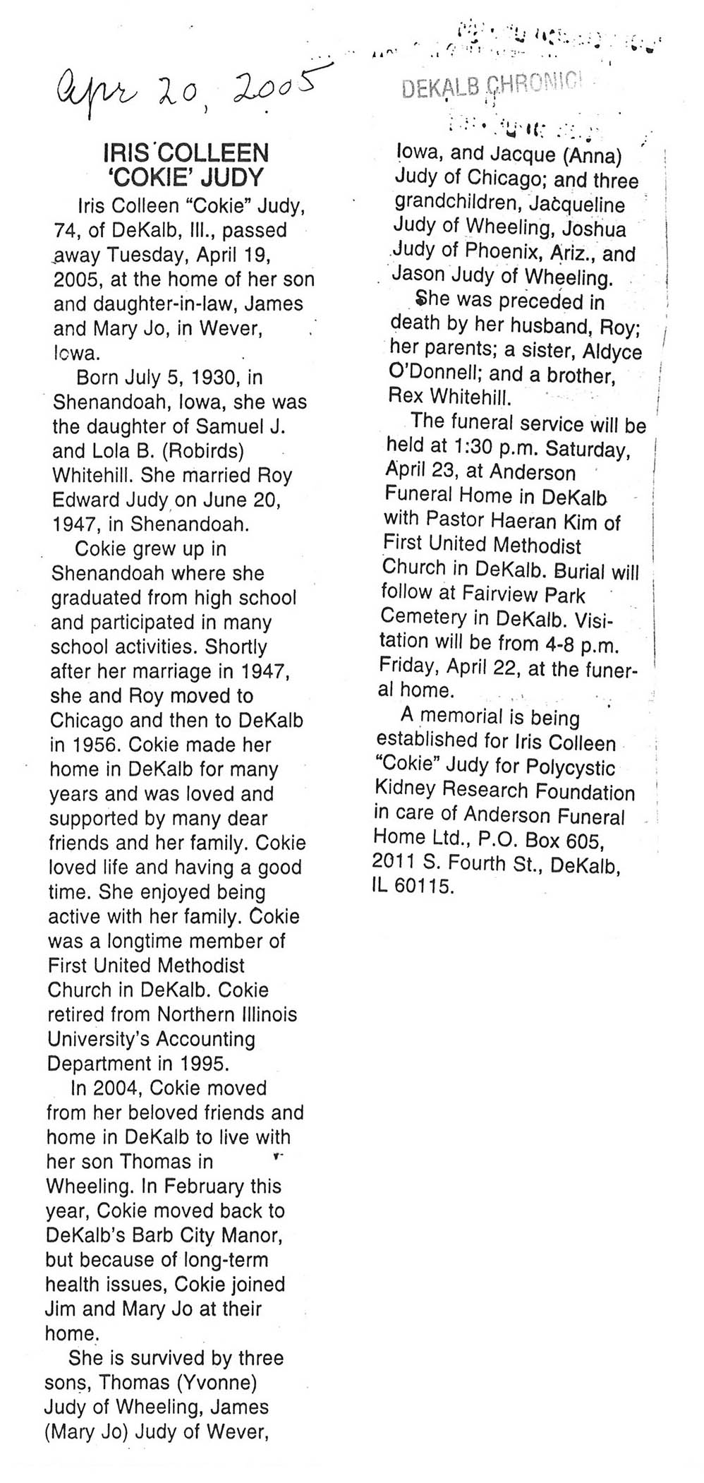 Maiden name - Whitehill
