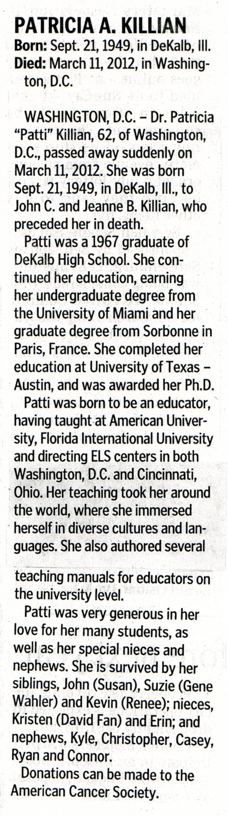 Deceased Jan. 10, 2012