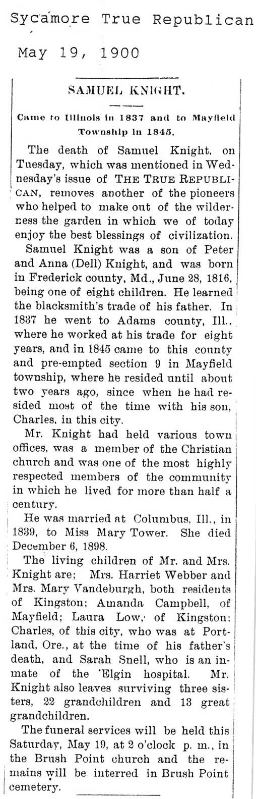 Buried in Monroe Center, IL