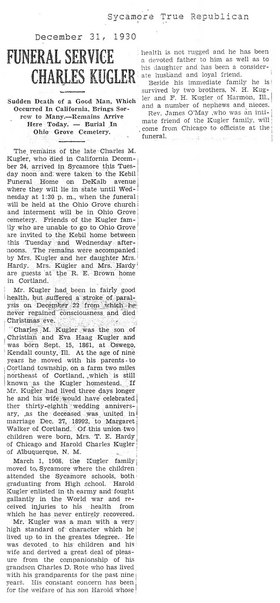 DOB Novemeber 29, 1873