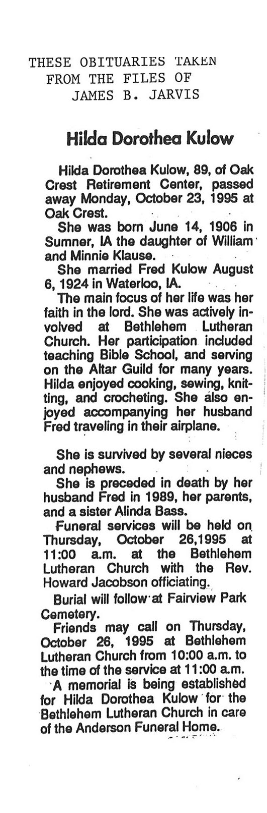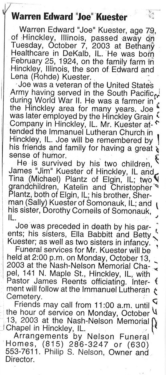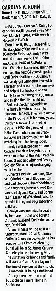 Buried in Baker Cemetery - Lily Lake, IL