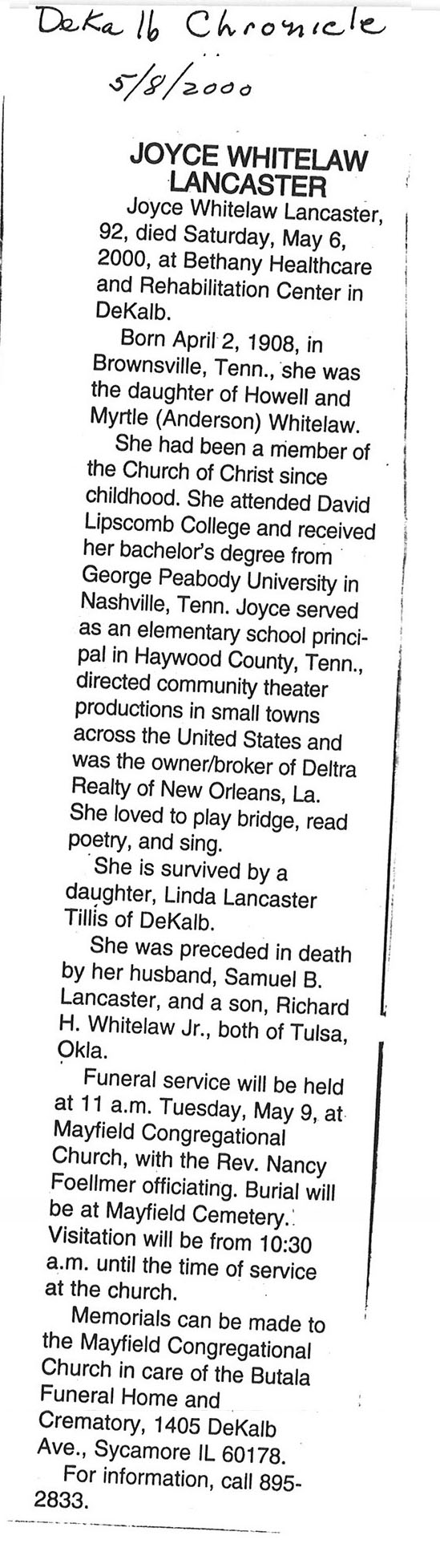 Maiden name - Whitelaw
