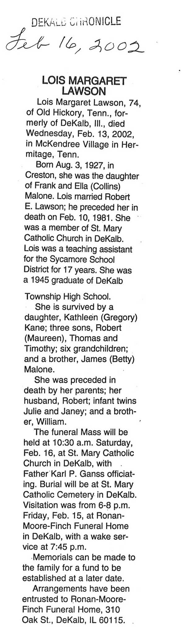 Home » Displaying all obituaries by name of the decesased (43411 matches)