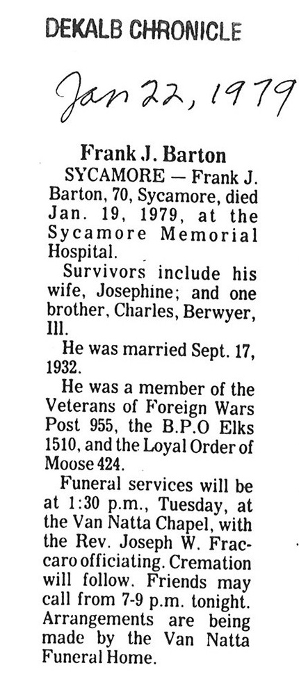 Note: obit has death year as 1923 cemetery listing has year as 1929