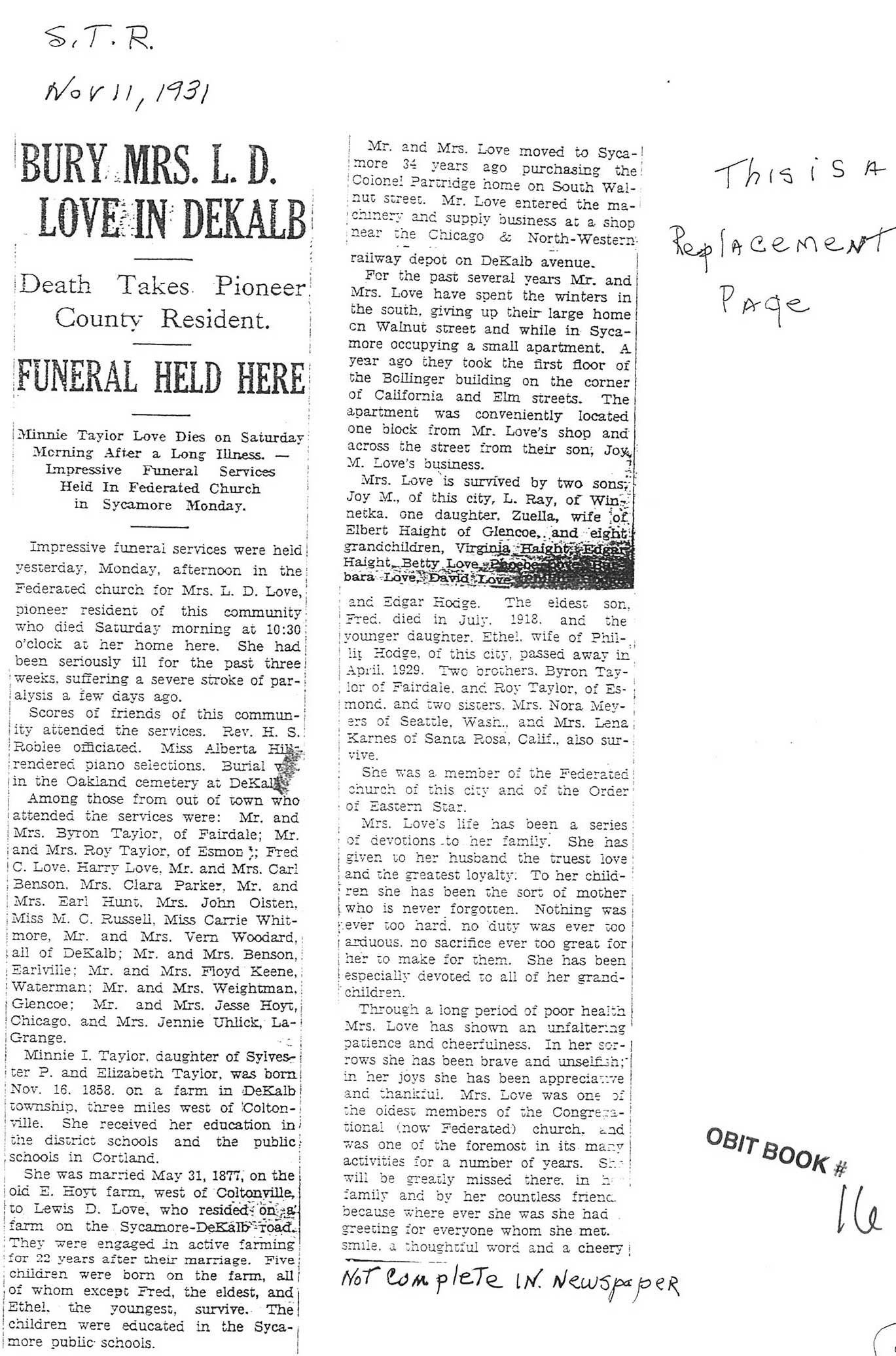 DOB 16 November 1858