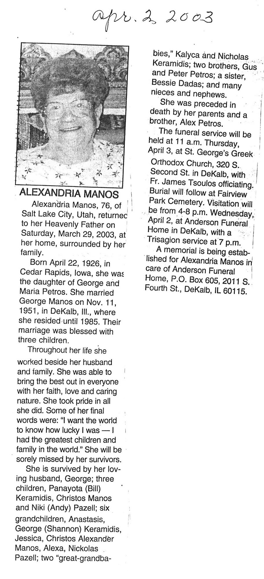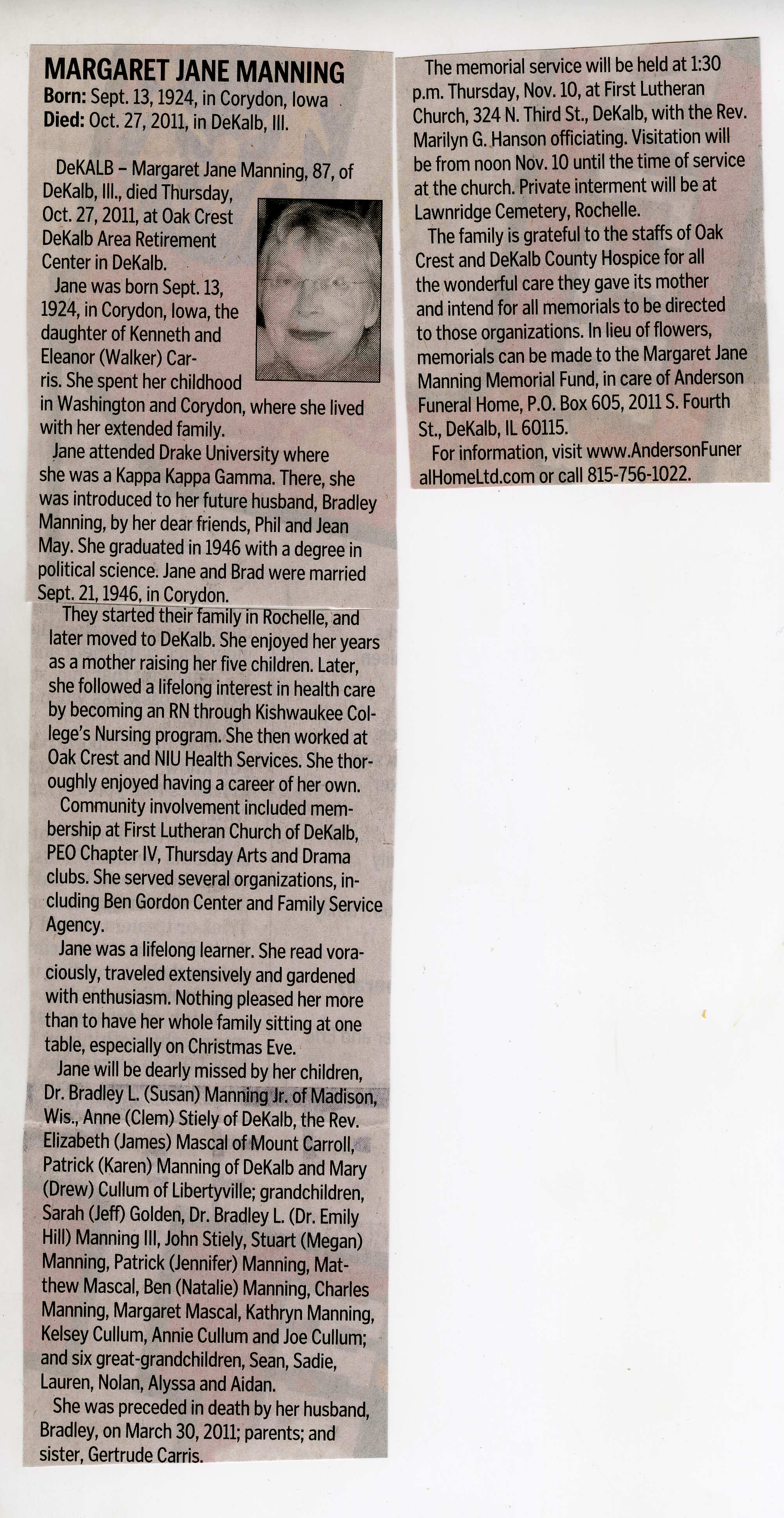 Maiden name unclear-spelled 2 ways in obit