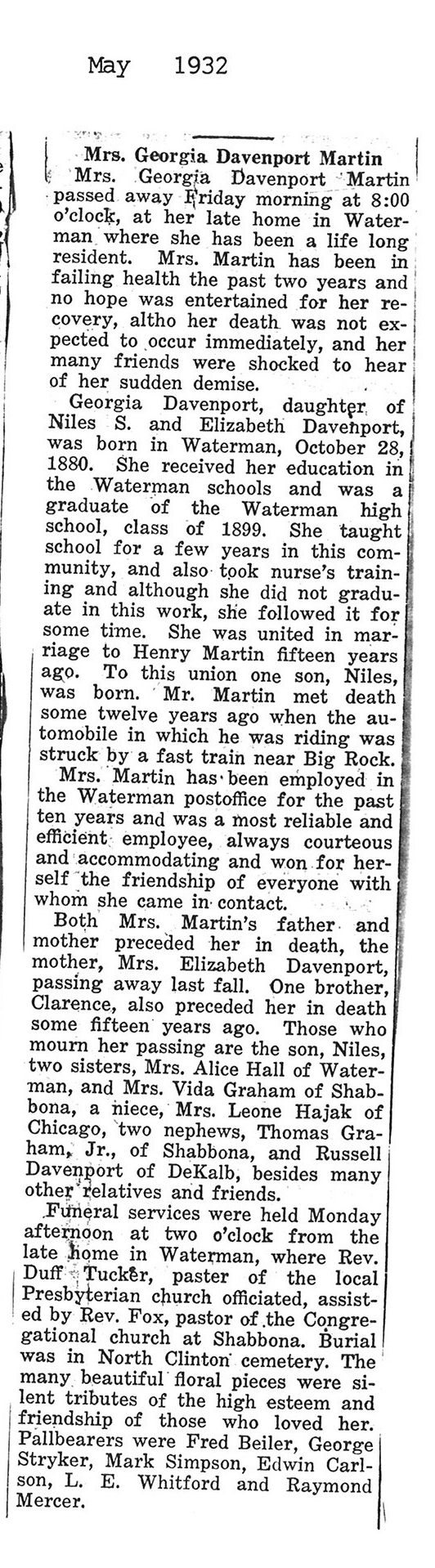 Deceased May 22, 1931