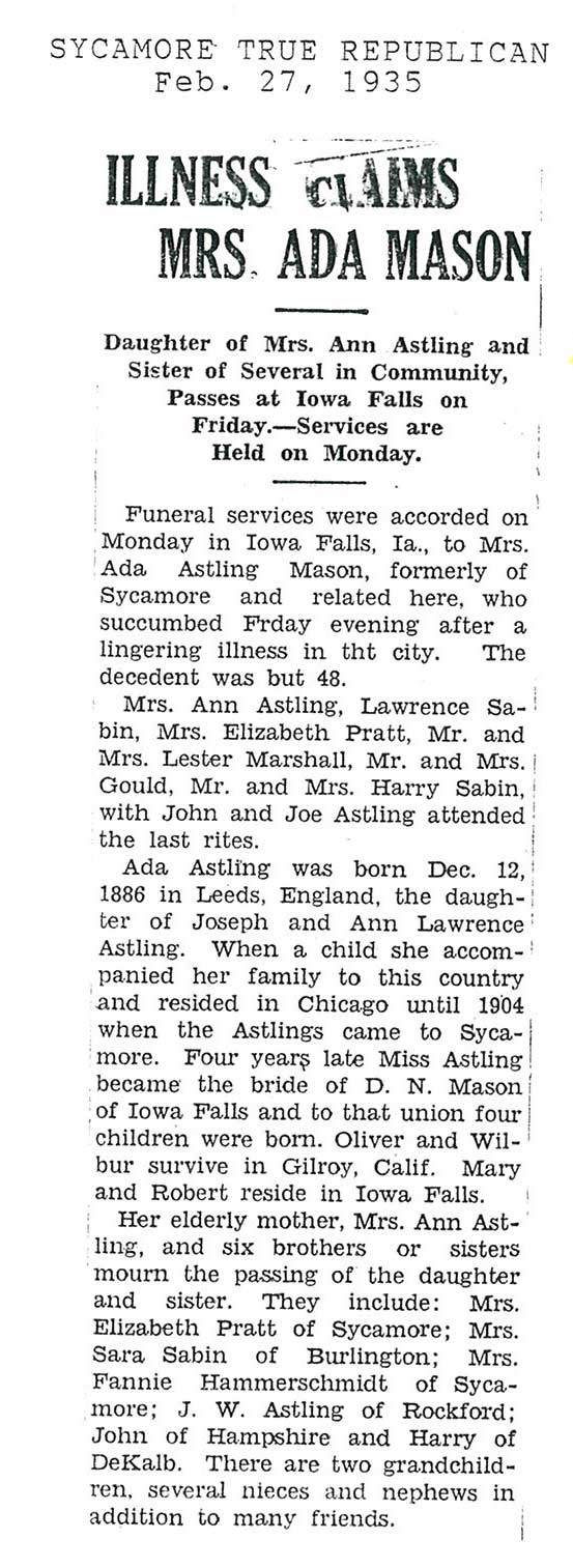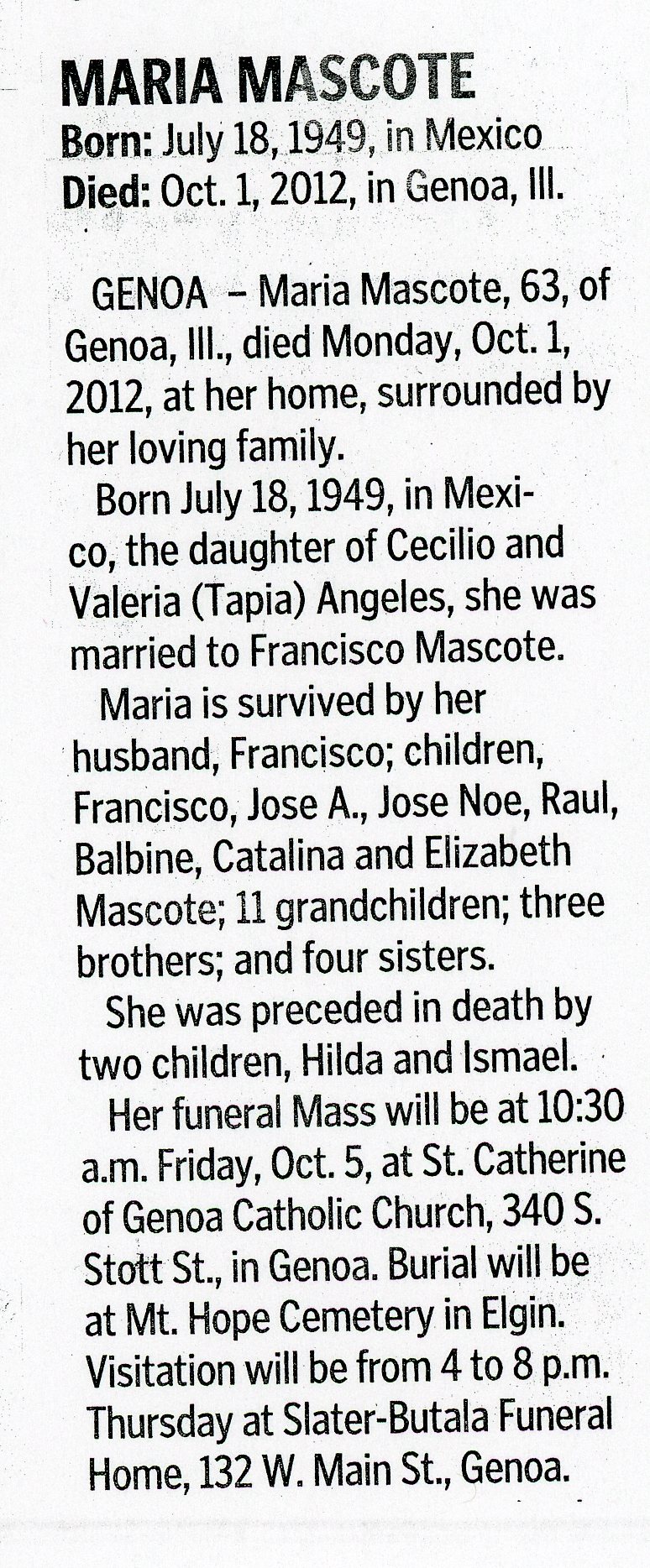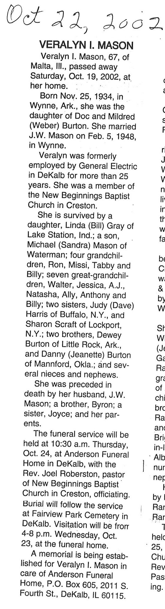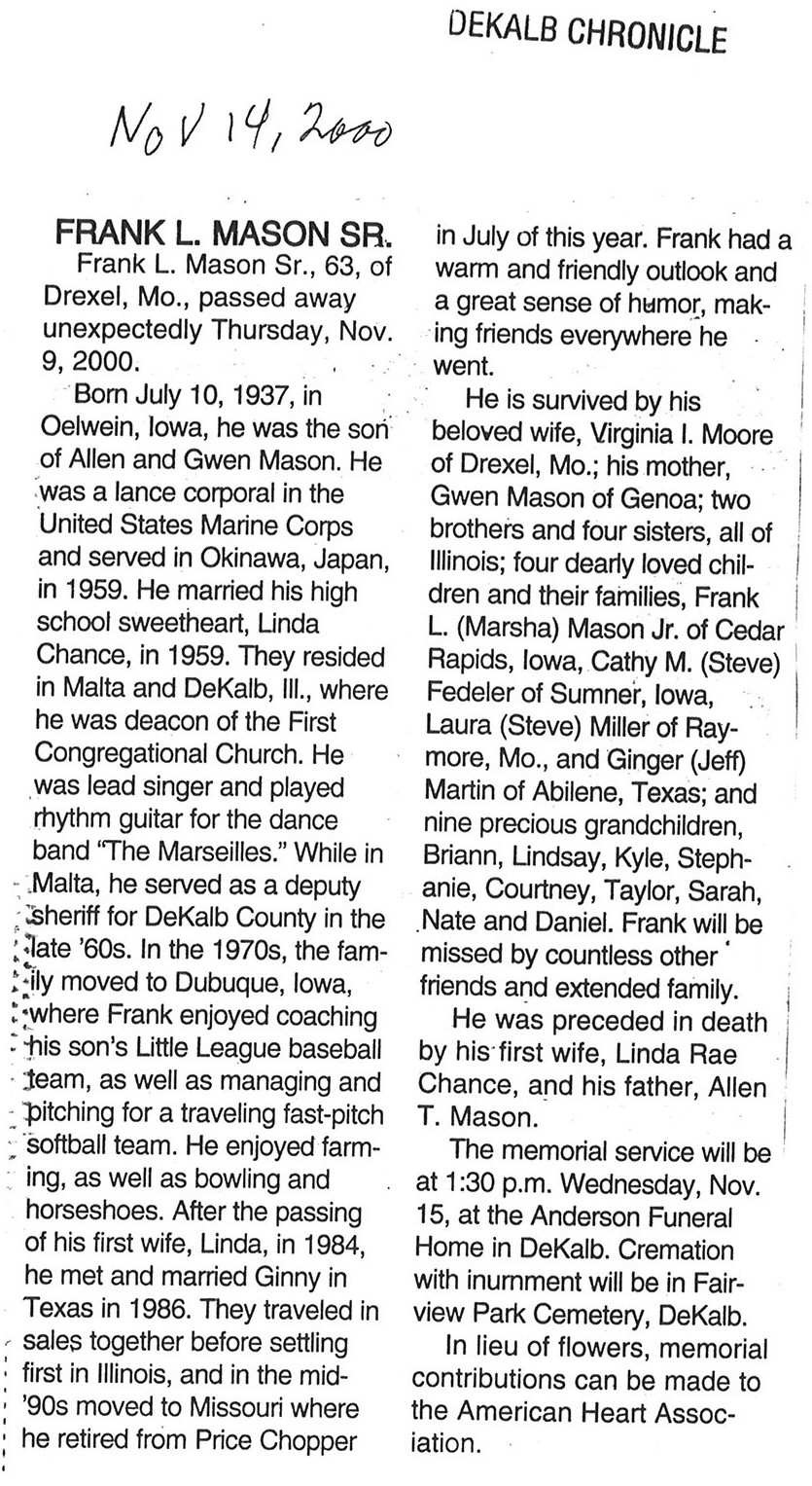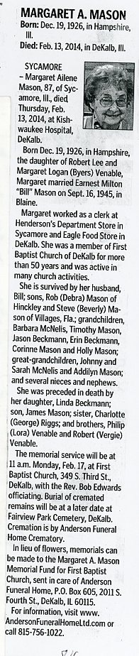 Buried in Trinity Memory Gardens - Rochelle, IL