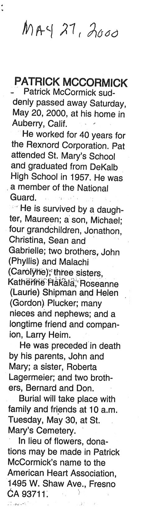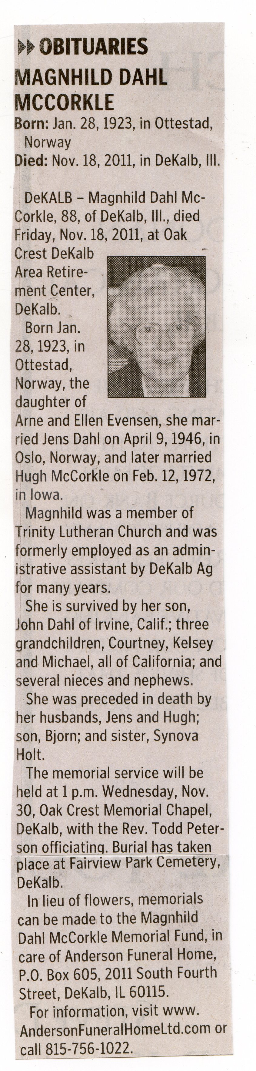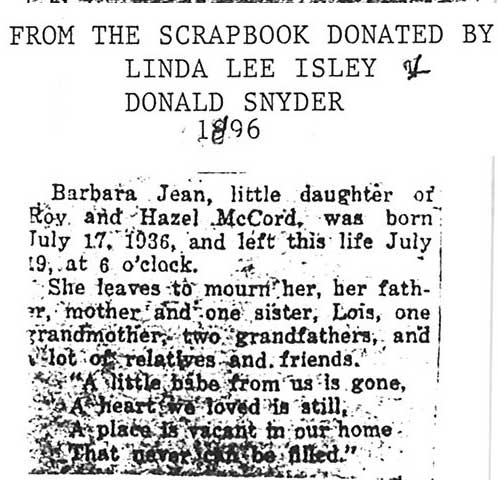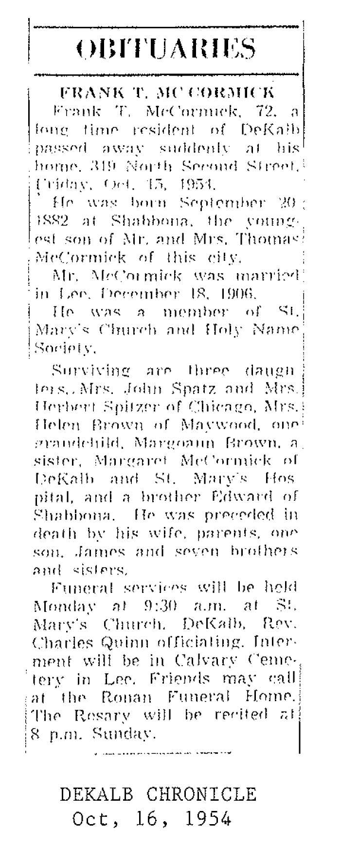 Buried in cemetery south of Lee, IL
