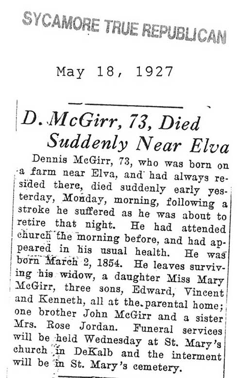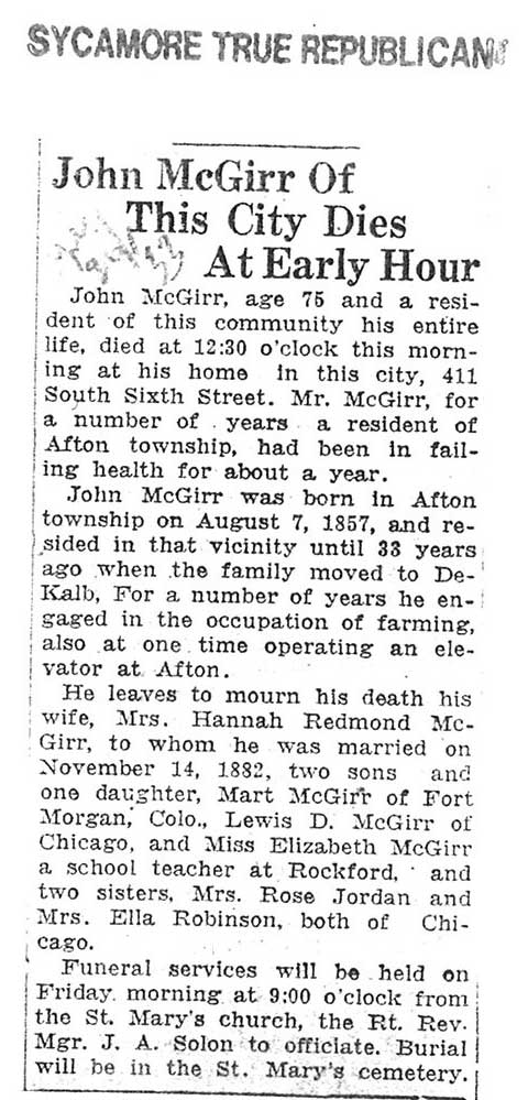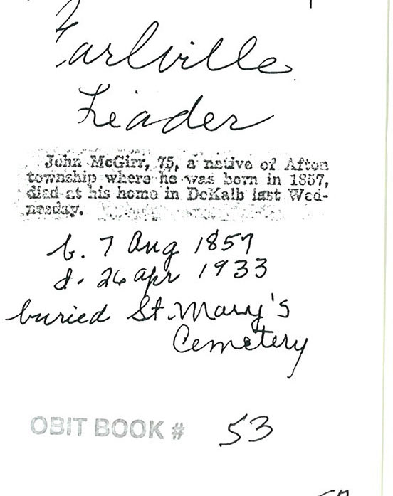 No date of birth Buried in St. James Calvary Cemetery - Lee, IL