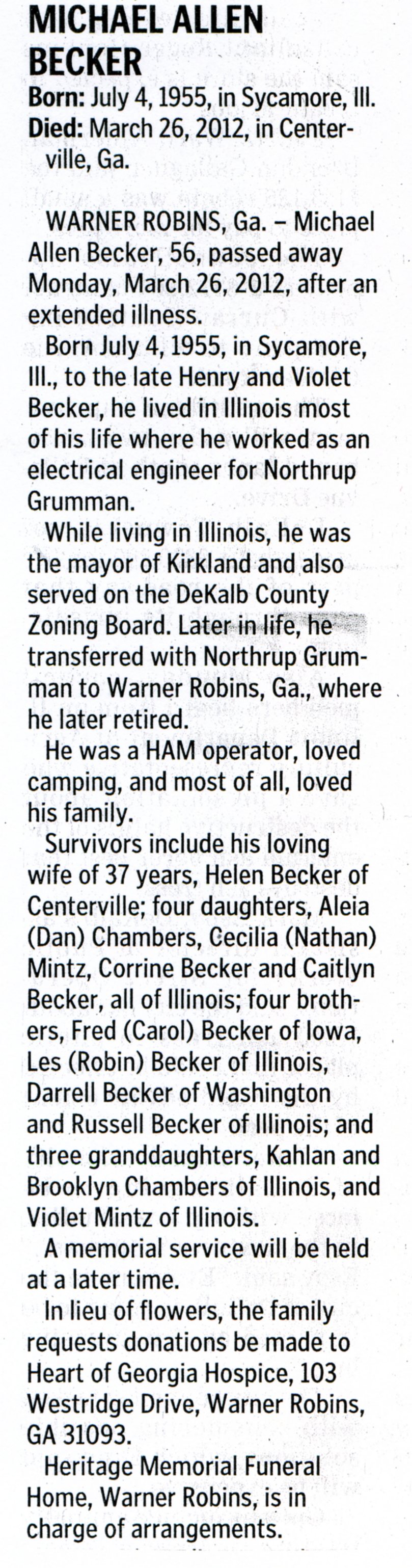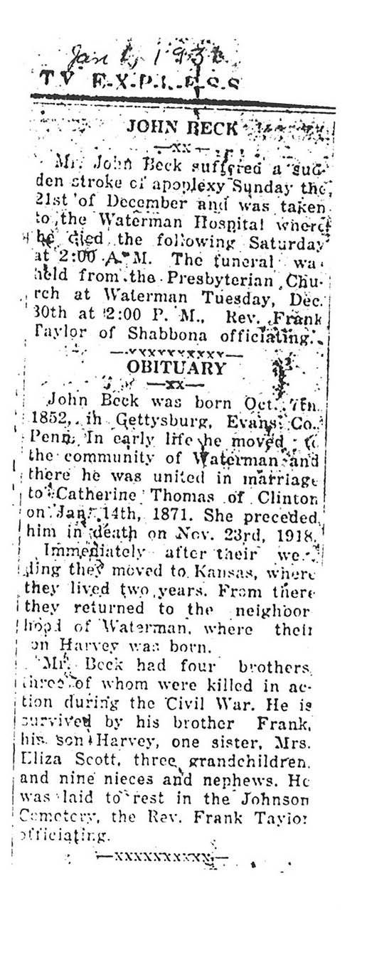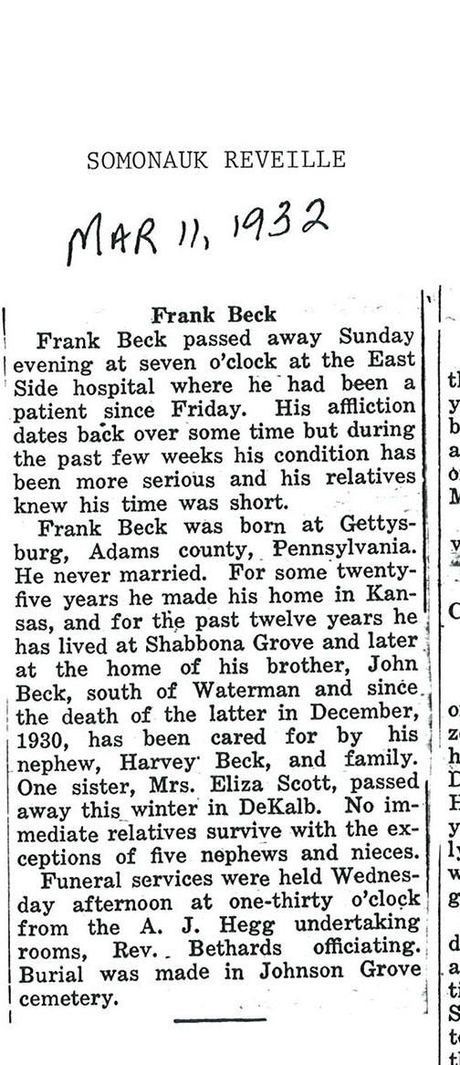 Buried in Brodie's Grove - Near Creston, IL