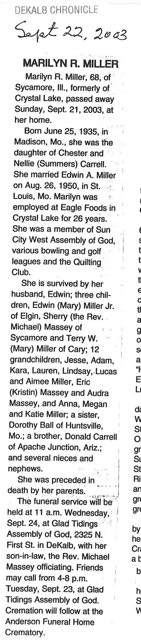 Deceased July 27, 2003