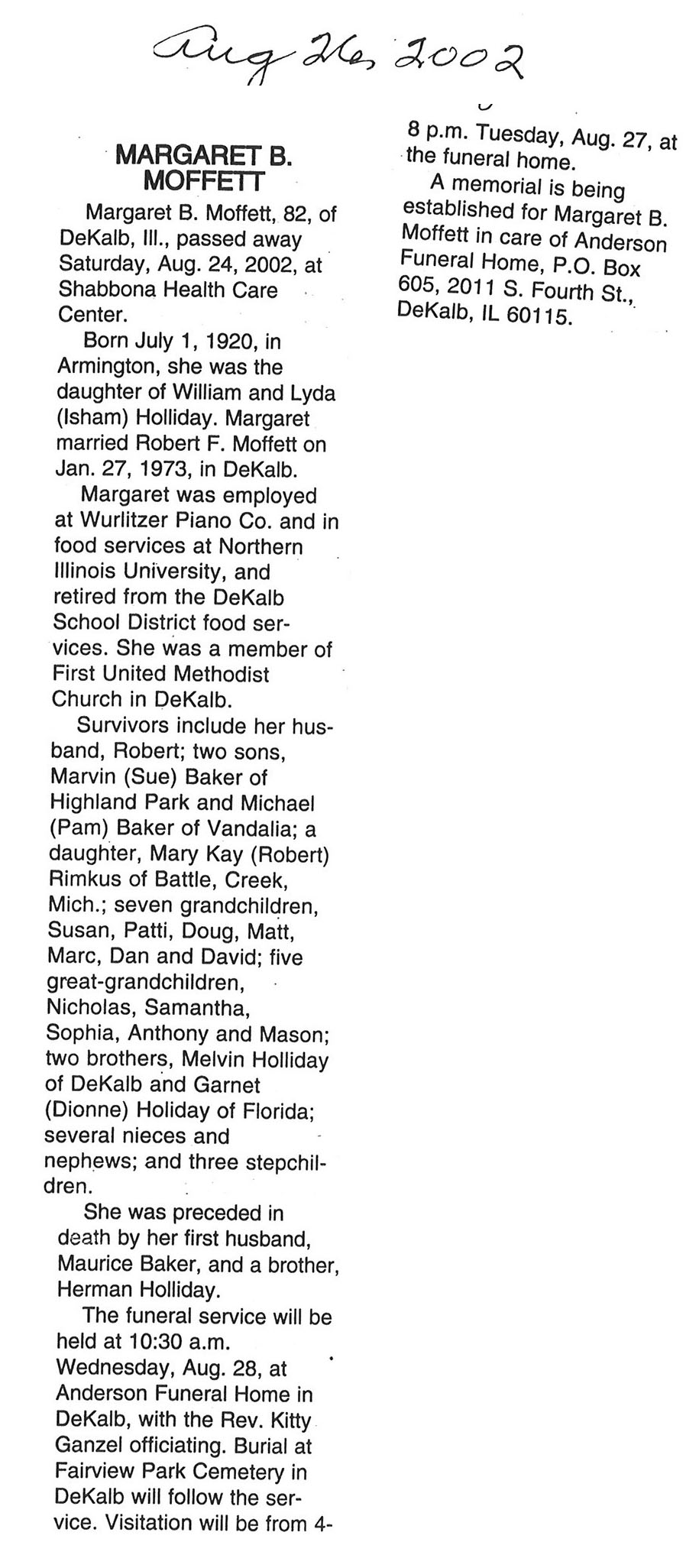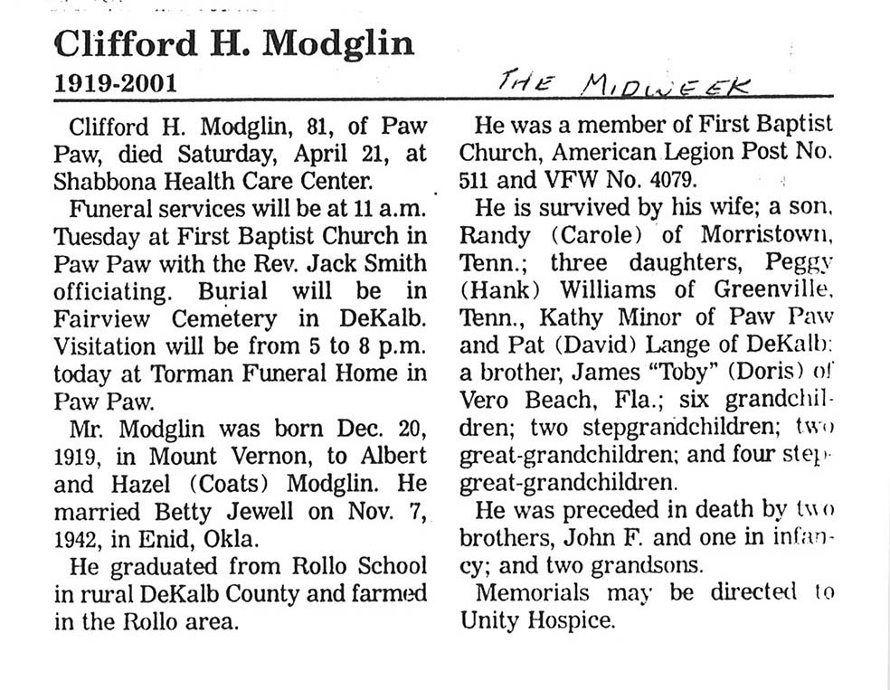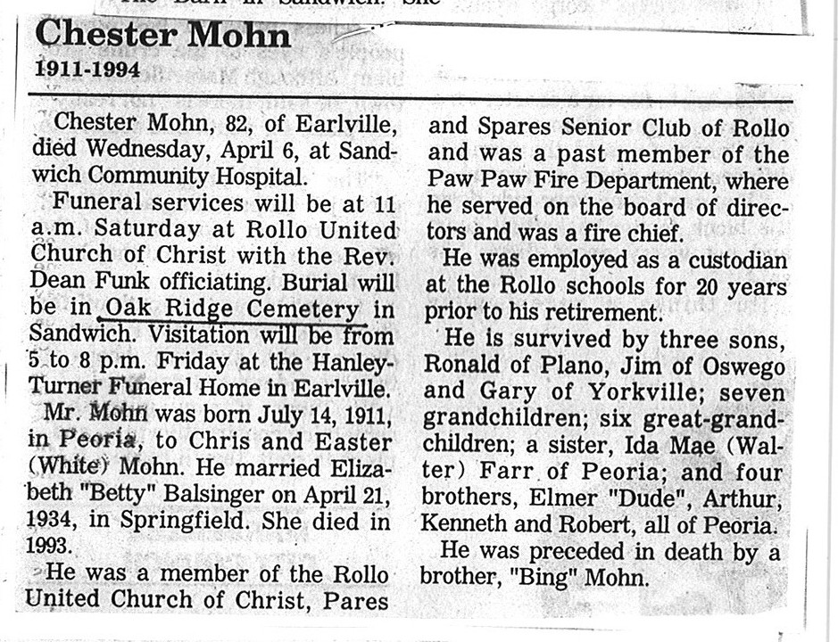 Buried in Wyoming Cemetery - Paw Paw, IL