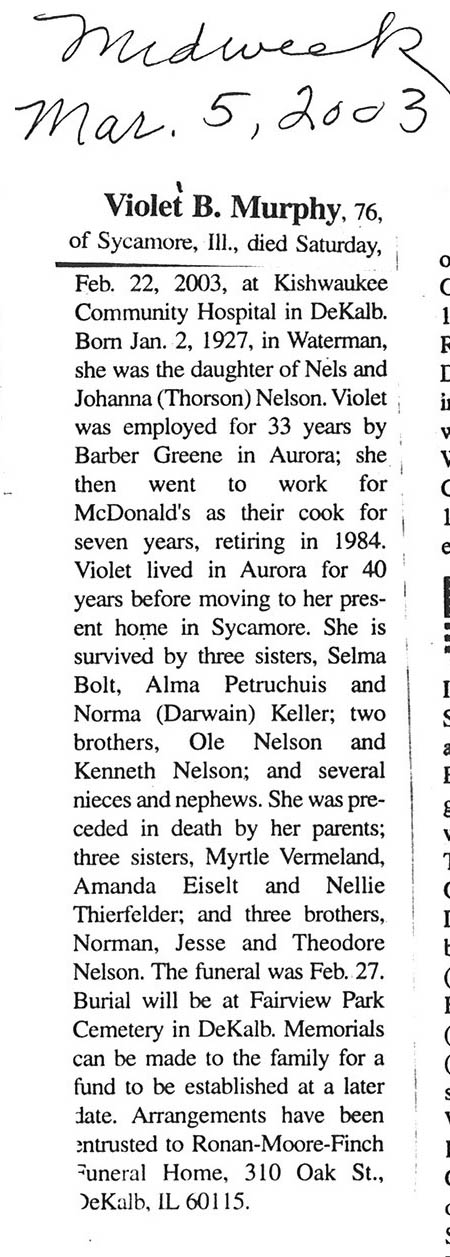 This obit did not give the date of birth, the age or the date of passing. The date for the paper was 20081109