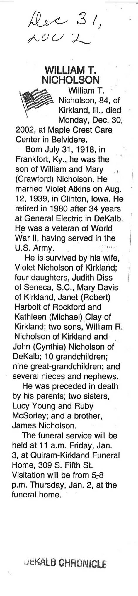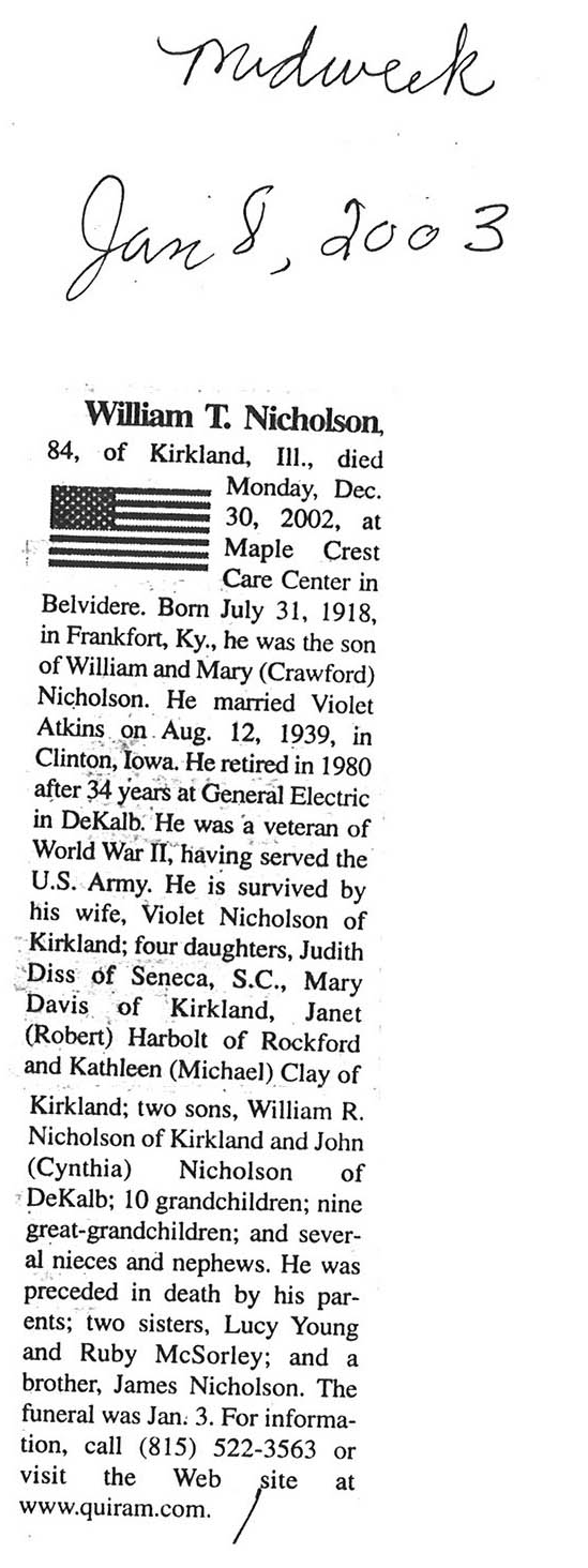 Buried in Wyoming Cemetery, IL