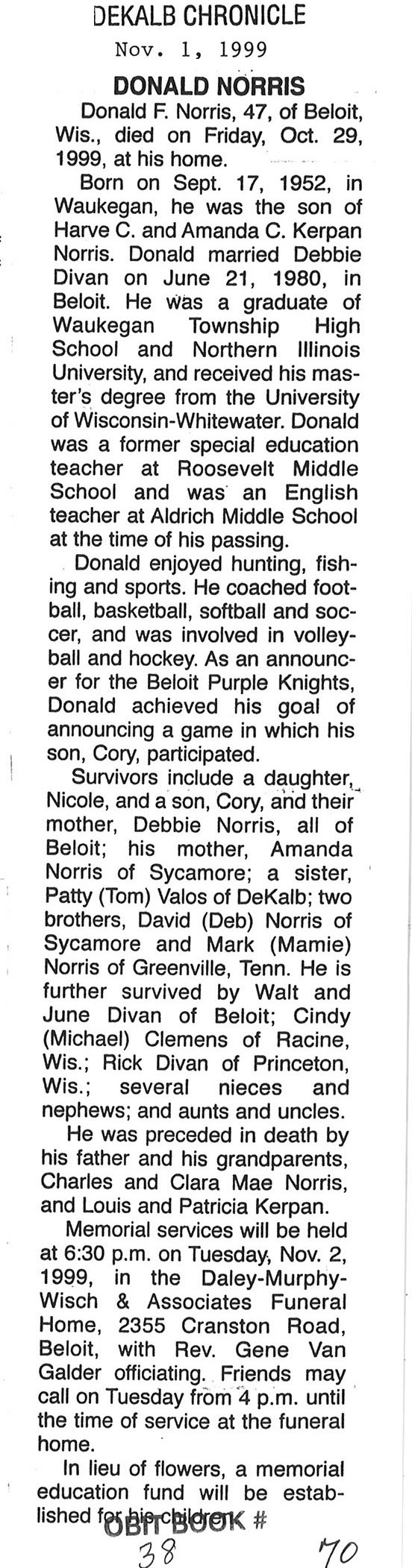 Deceased Sept. 28, 1999