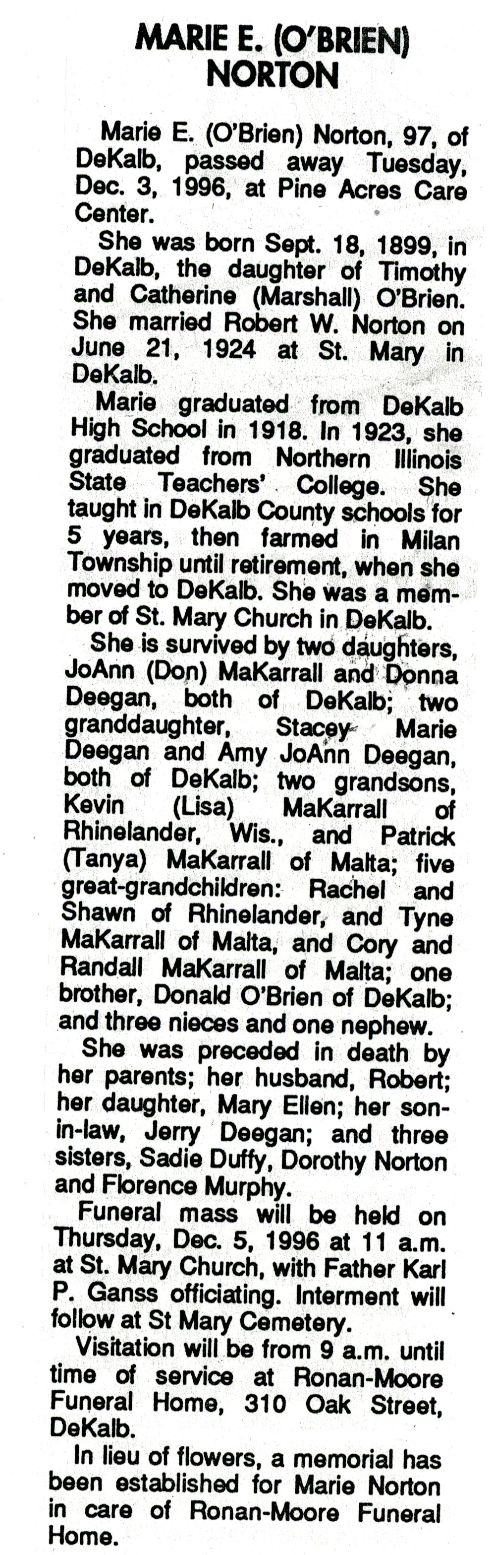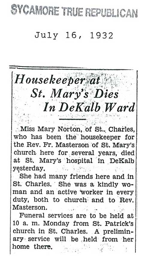 Buried in St. James Calvary Cemetery - Lee, IL