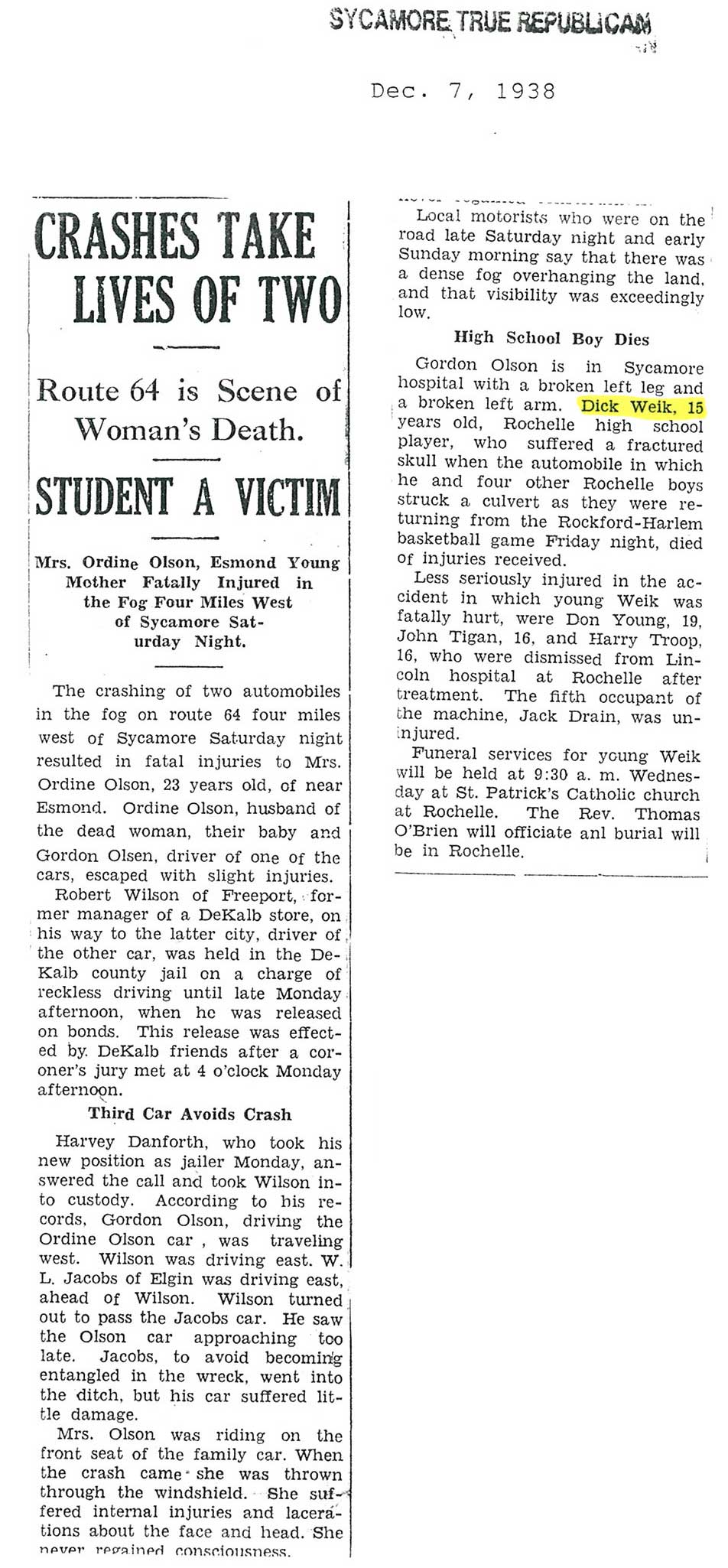 DOB 20 December 1887