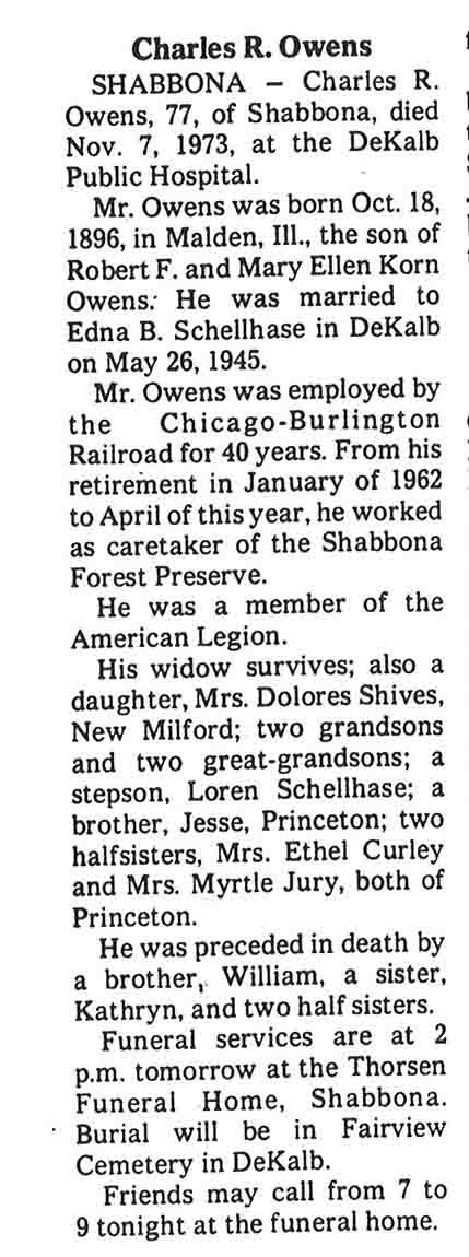 Conflicting obit Owen and Owens-cemetery listing has Owen