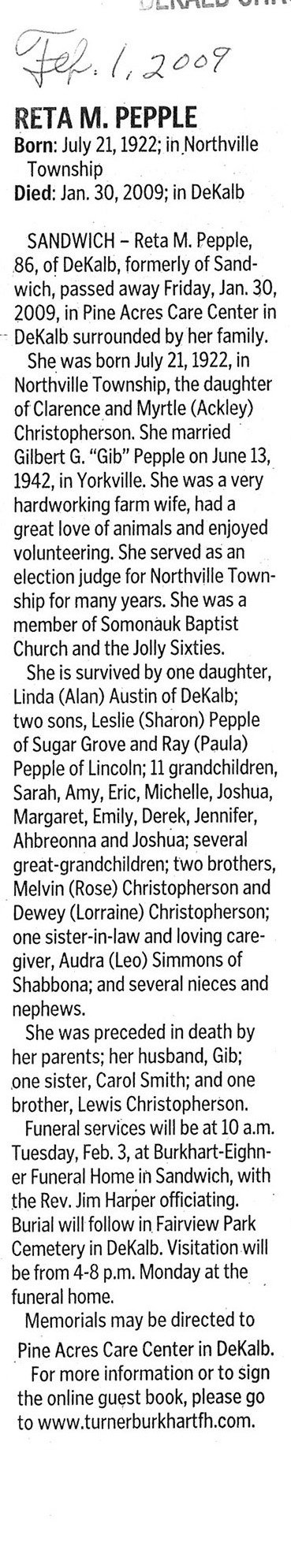 Buried in South Burlington Cemetery - Burlington, IL