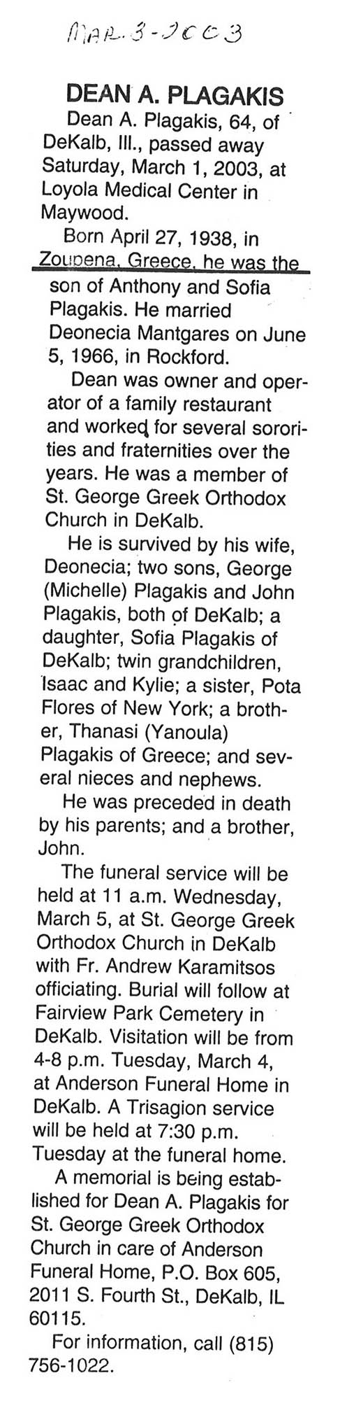 DOB April 27, 1938 in Greece