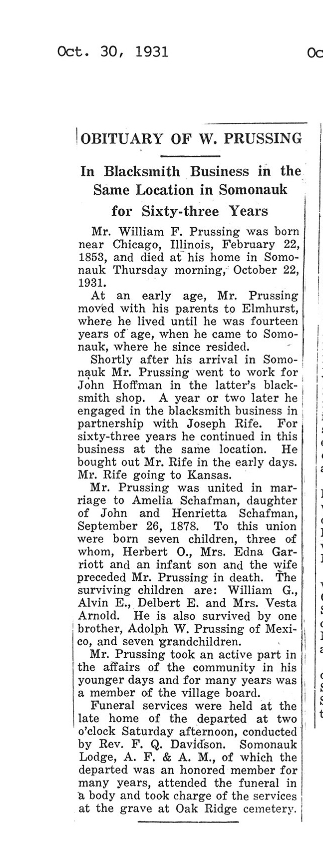 Buried in Ellsworth Cemetery, IL