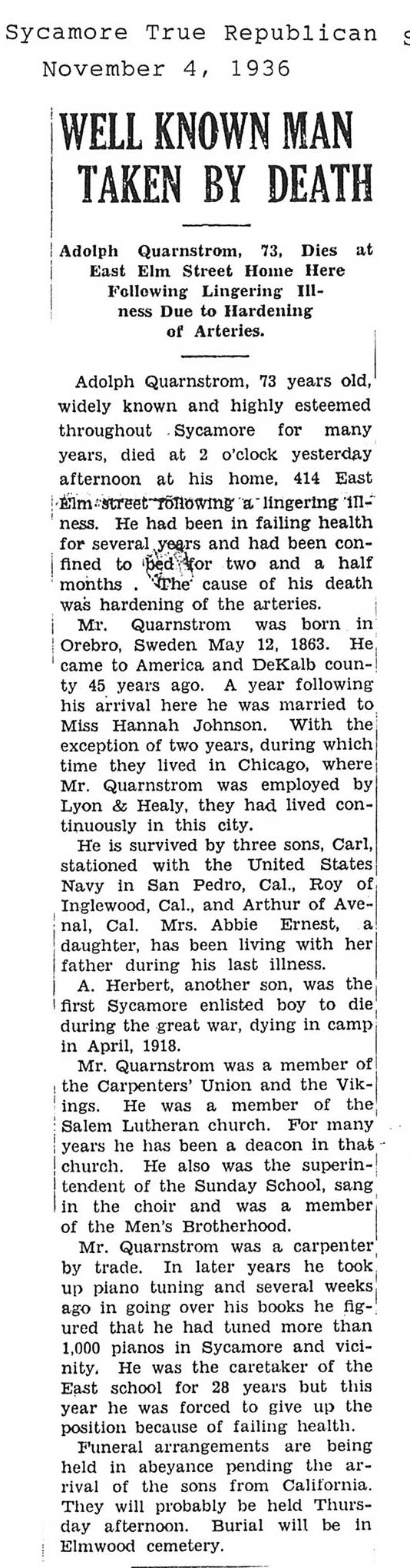 DOB December 27, 1862 in Sweden