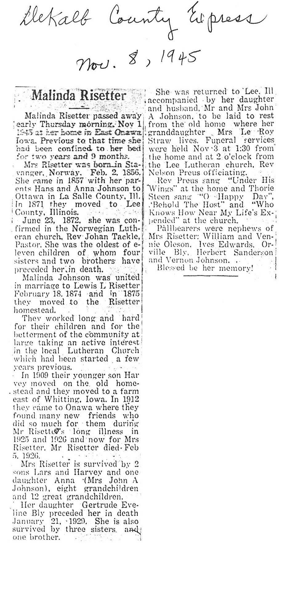 DOB February 2, 1856 in Norway