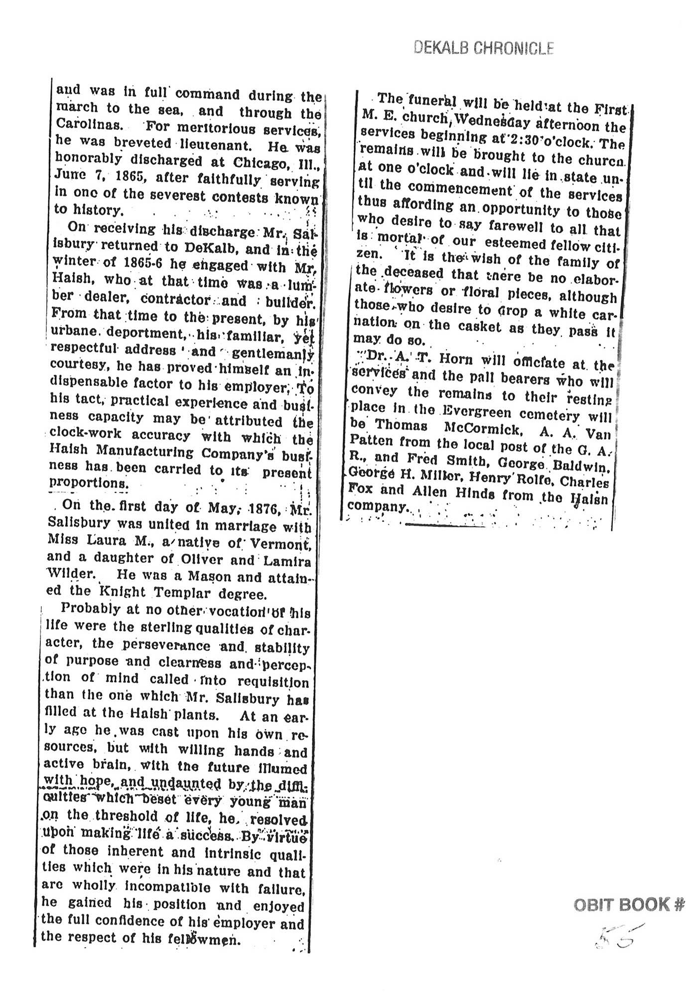 Burial in Hoopeston, IL