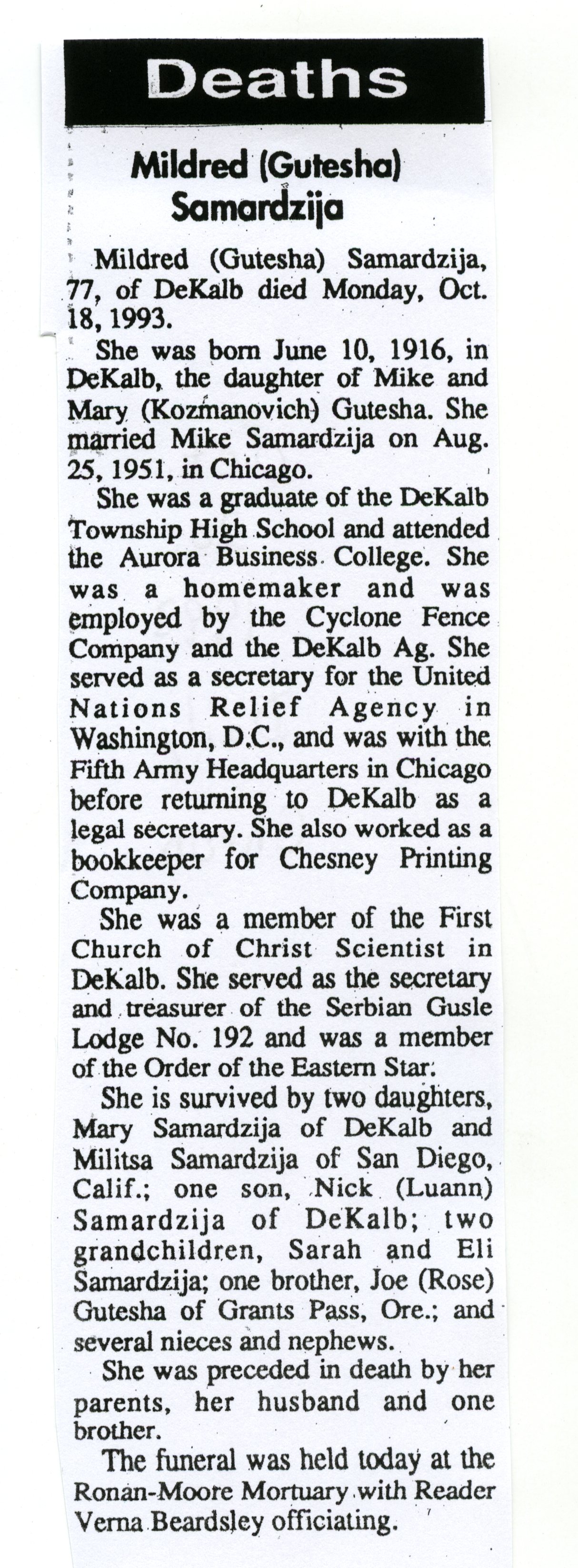 Buried in South Burlington, IL