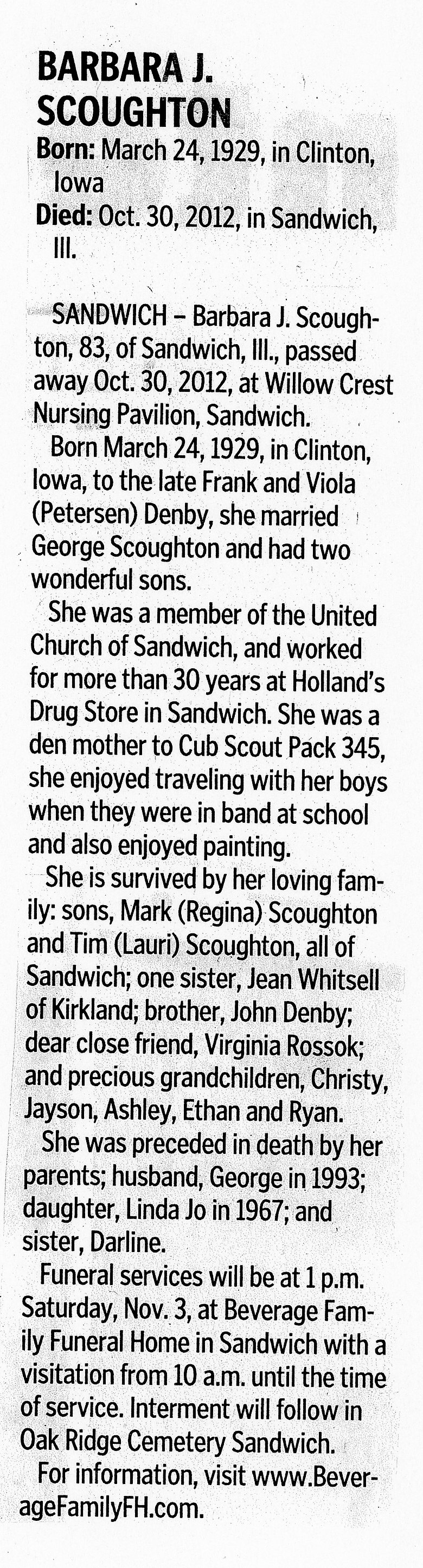 Buried in Shattuck's Grove Cemetery - Belvidere, IL