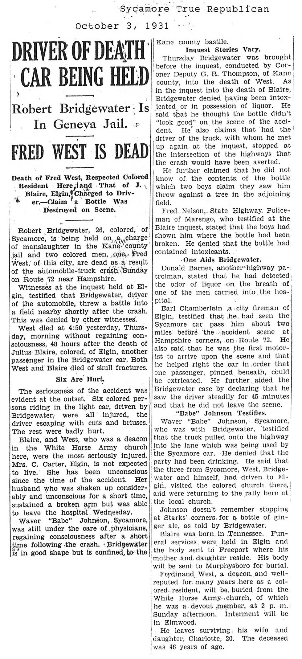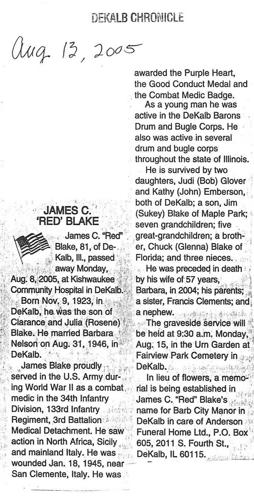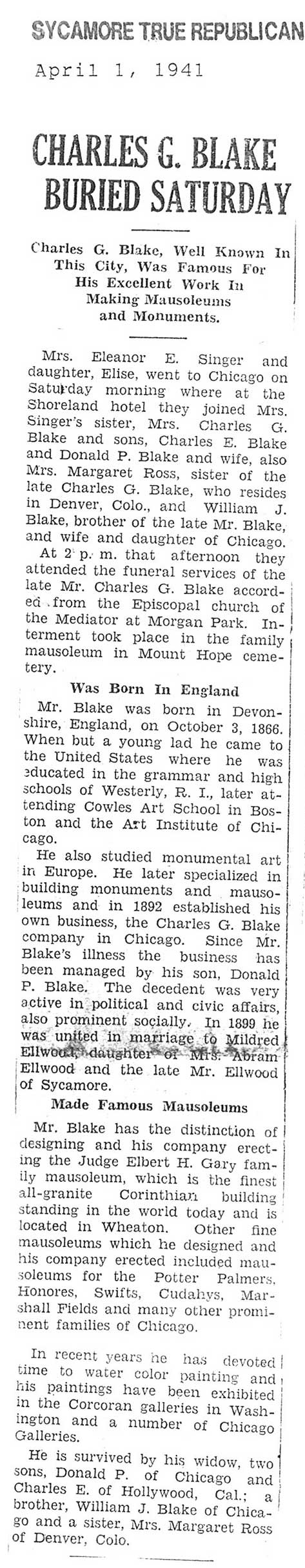 No date of birth Buried in Sycamore, IL