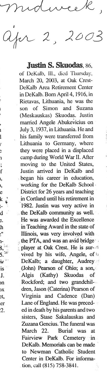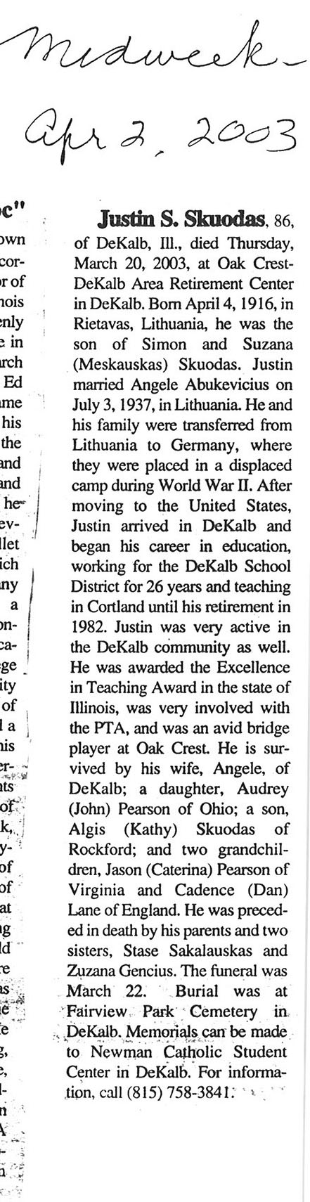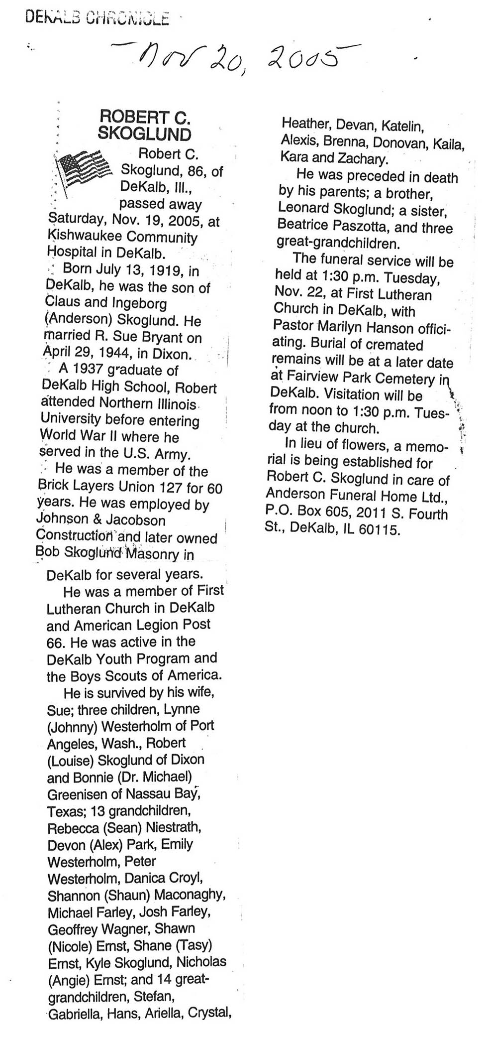 Buried in Cedar Bluff Cemetery - Rockford, IL
