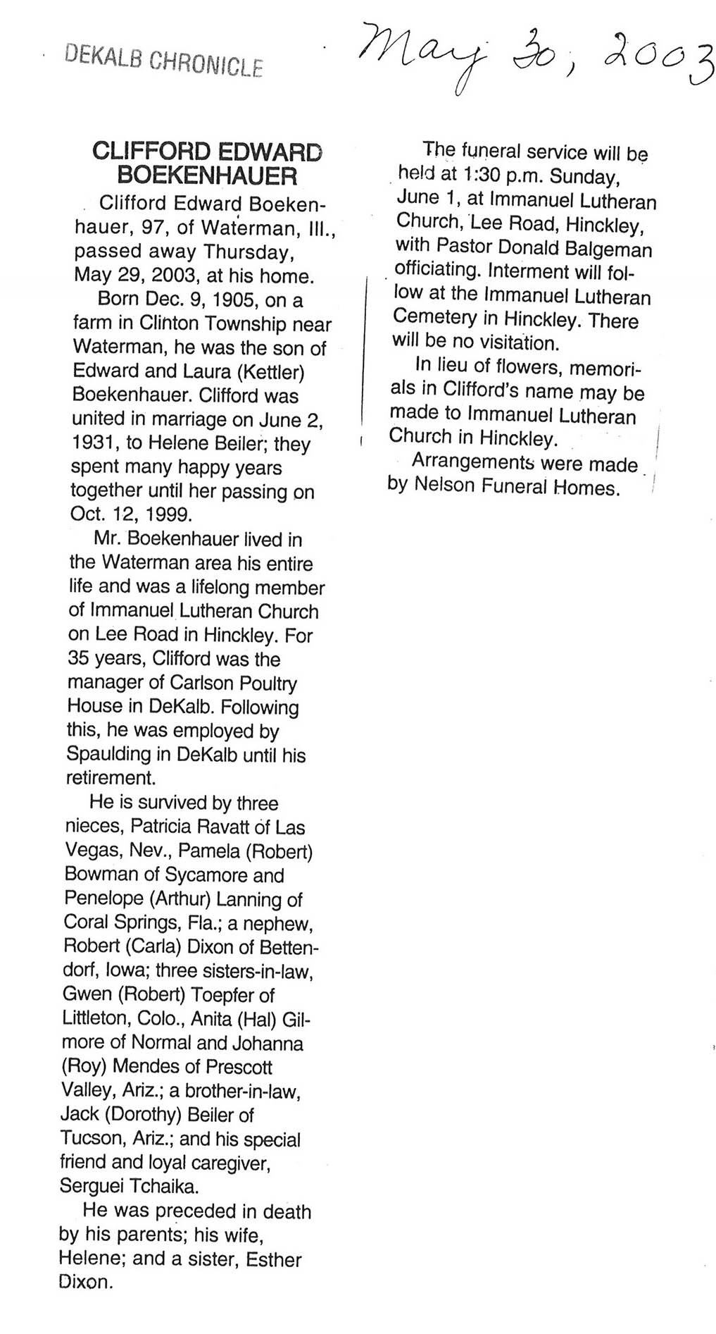 Deceased May 29, 2003